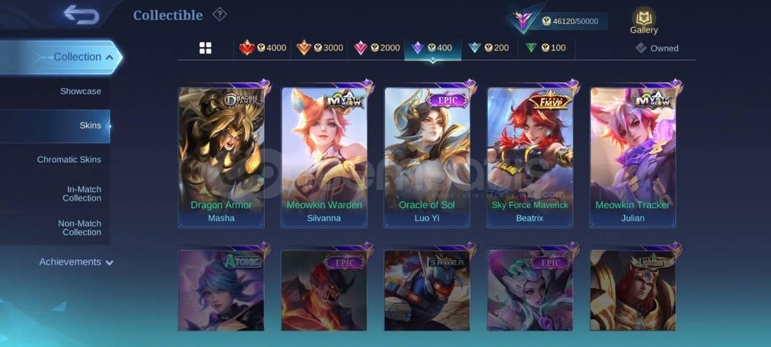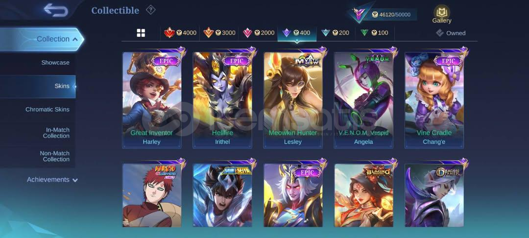 1 Legend SkinBolca Epik skin60 Yıldıza kadar çıkmış hesap 3 kere Mistik olmuş Içinde bolcada popülerlik eşyası vardır3 Amblem Max diğer amblemlerde maxa yakınBilgileri sorunsuzca değişir asla sıkıntı yoktur, guvenebilirsiniz