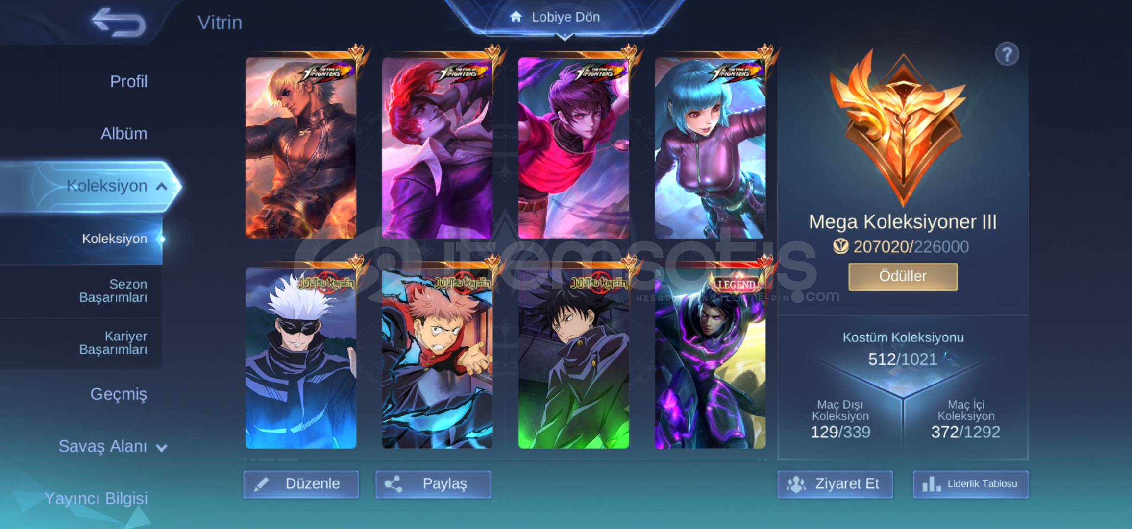 Kof 4Jujutsu-kaisen Transformers Türlü türlü kostümler vardır toplam 530 kostüm var