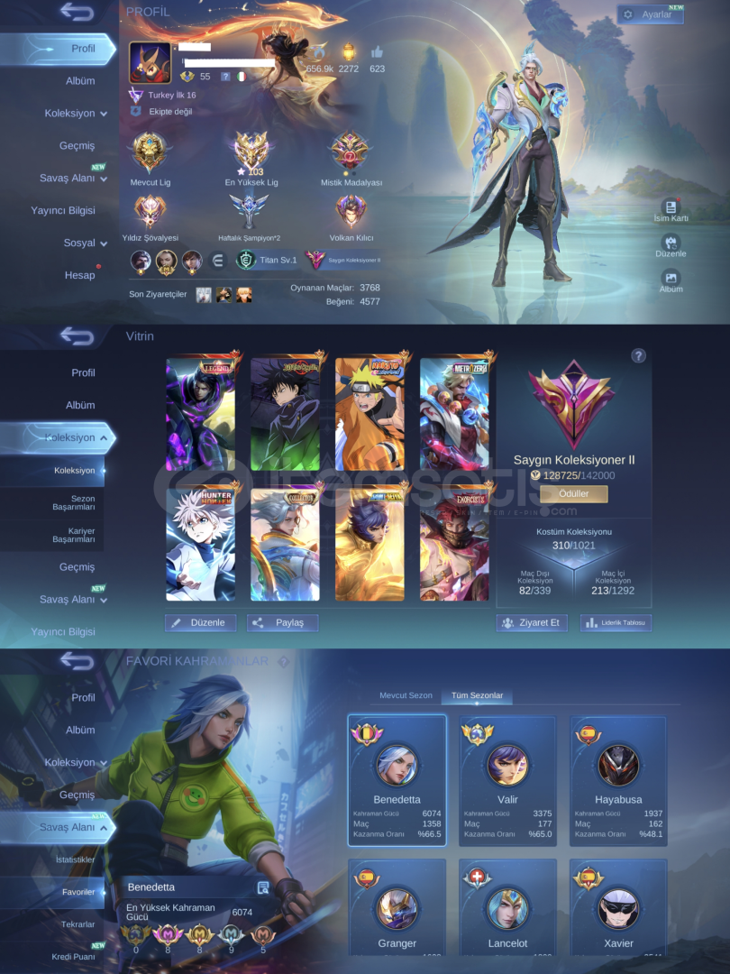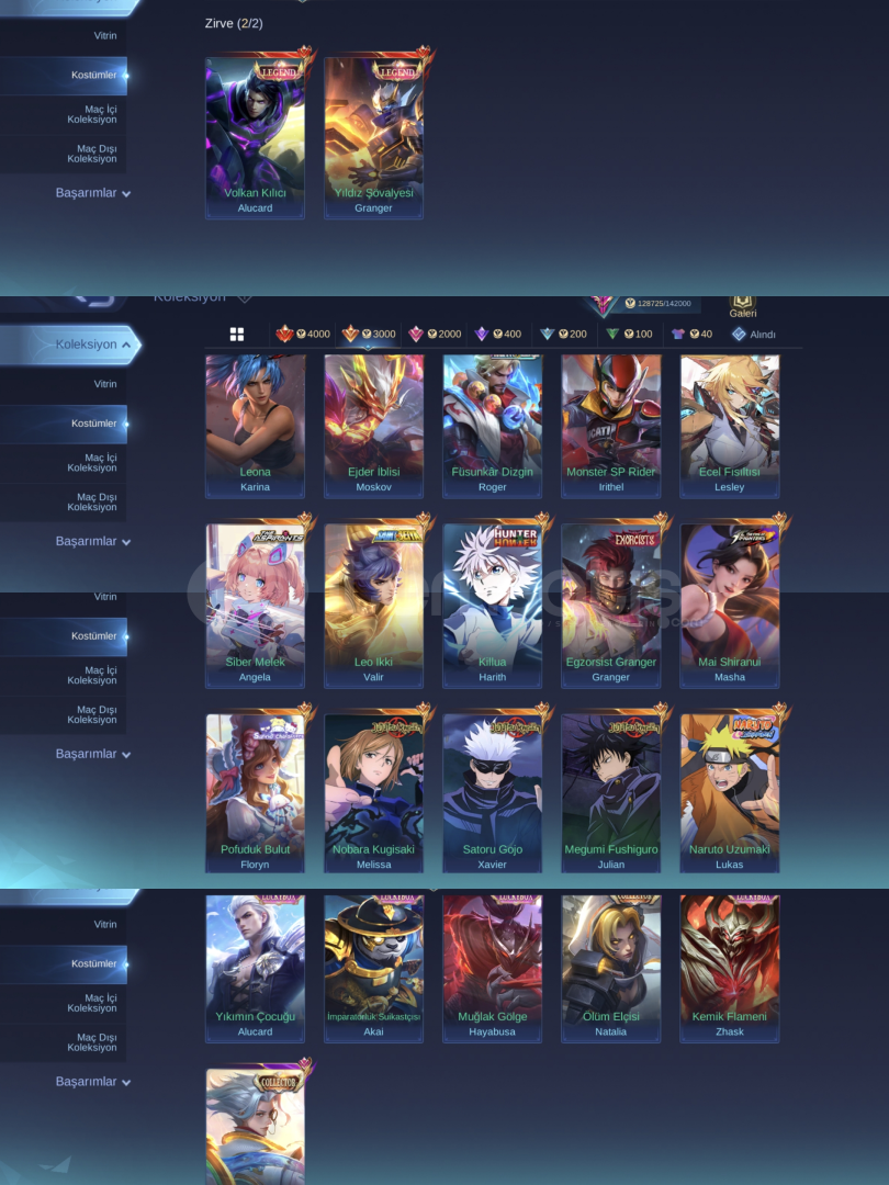 - *ALUCARD GRANGER LEGEND* - *JUJUTSU YİN HARİÇ FULL* - *METRO ZERO ROGER* - *ASP ANGELA LESLEY* - *EJDER İBLİSİ MOSKOV* - *DUCATİ İRİTHEL* - *KOF MASHA* - *TEK BAĞ MOONTON* - *MAİL DEĞİŞİMİ AKTİF* - *GLOBAL TAG VALE* - *MAXI 103*- *ASP 3 BİNGO YAPILMIŞ* - *1200 ŞAFAK KRİSTALİ*- *52 GÜNLÜK ELMAS GEÇİŞİ MEVCUT*