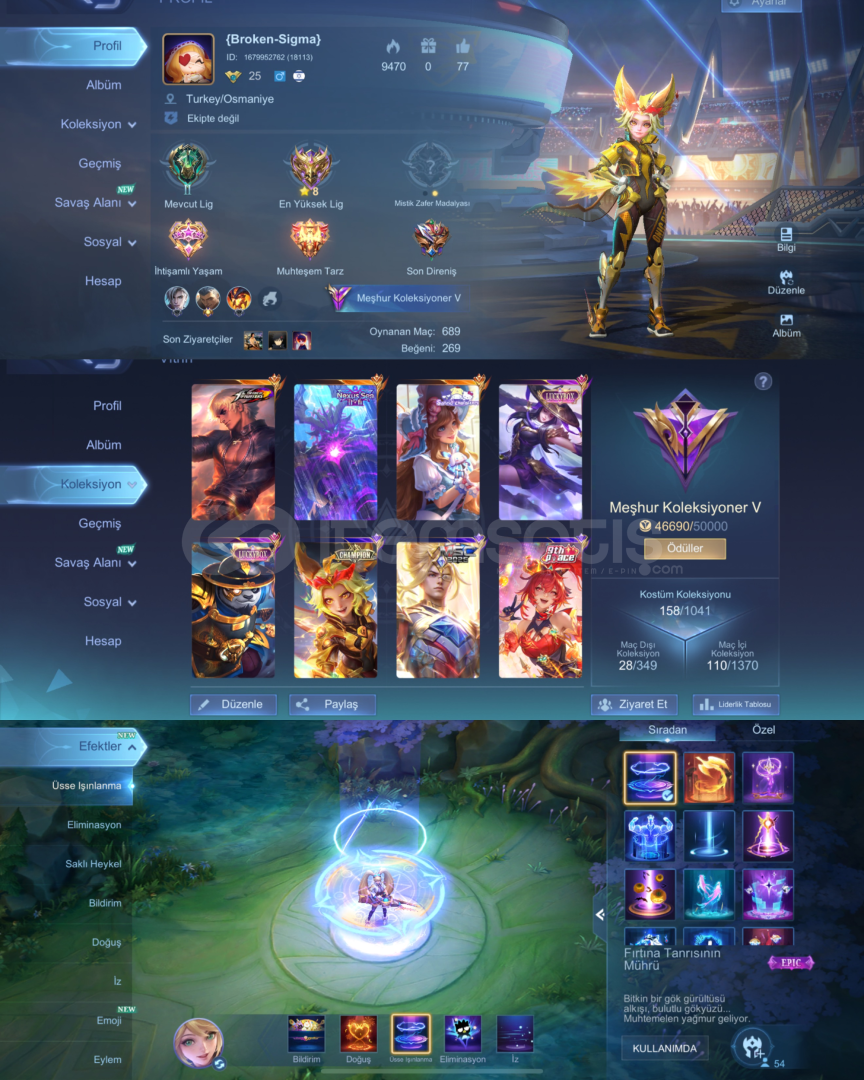 Sitenin En Büyük ve En Güvenilir Mobile Legends SatıcısındanEn Uygun Fiyat Garantisiyle• Yüksek işlem hacmine sahip güvenilir satıcı• 400+ başarılı işlem• Moonton’a bağlı Gmail ile güvenli teslim• İşlem öncesi & sonrası destek• Asya elmasHesapta 3. taraf bağlantıları mevcuttur. Aktif güvenlik nedeniyle şu an değiştirilemem...