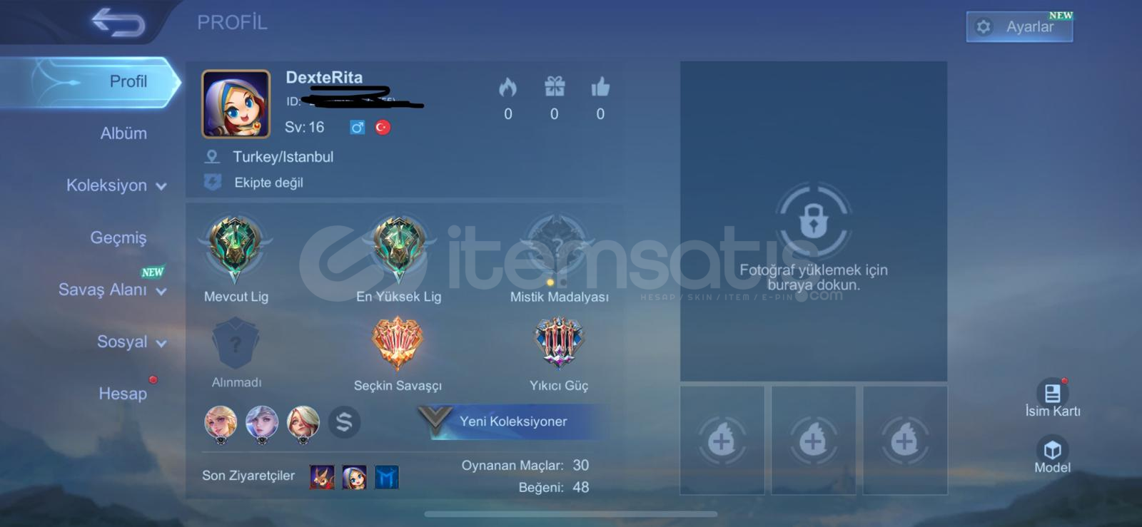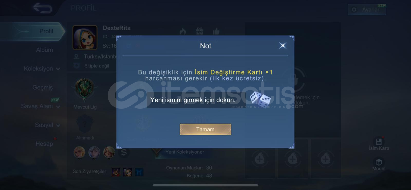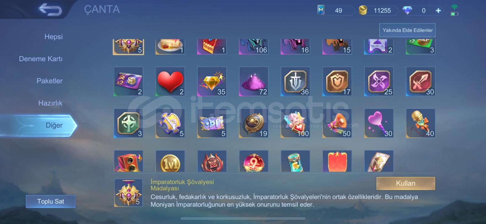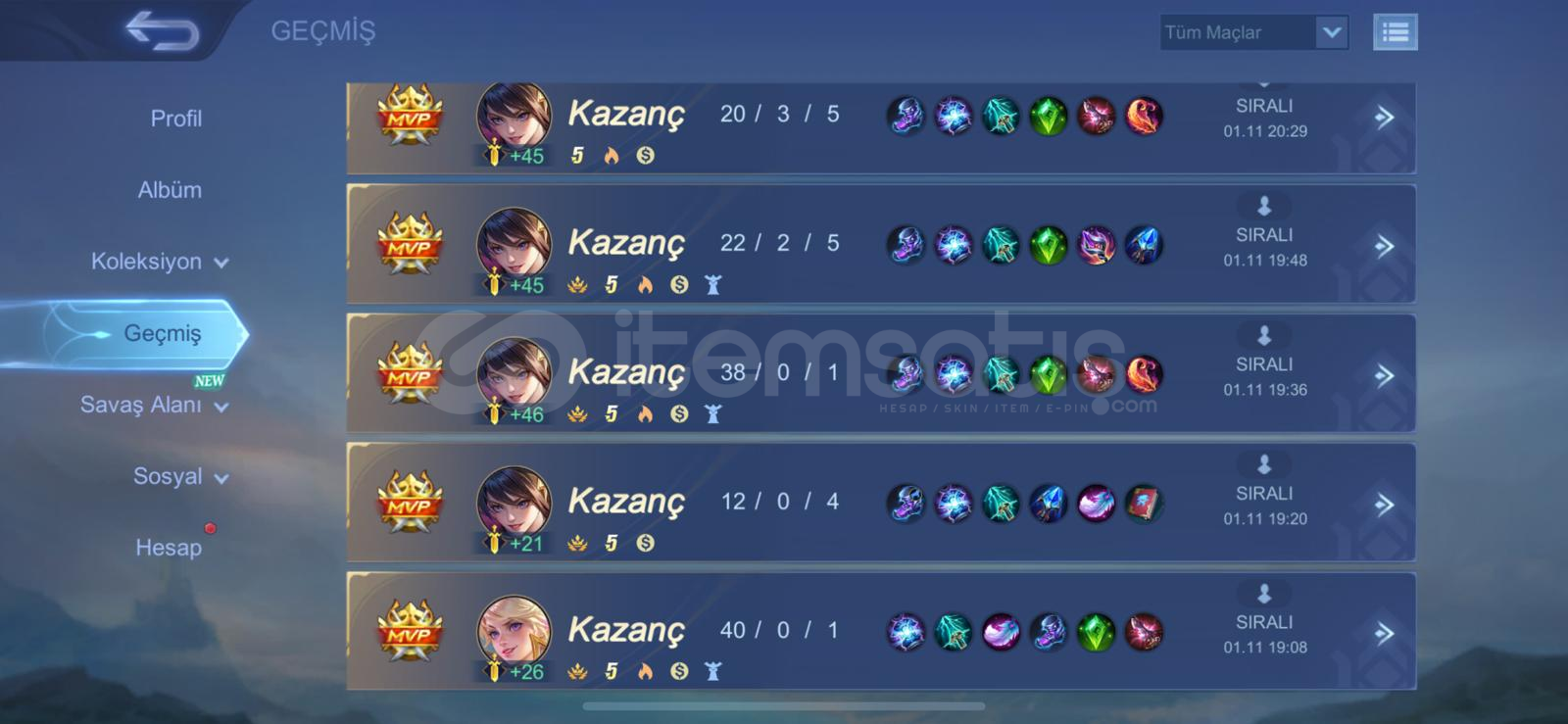 Tek bağ moonton mail değiştirilip sizin mailinize bağlanacak hesapEpik 5 ligindeoranı %100 smurf hesapİsim değiştirmeli41 level büyücü amblemi 42 level fiziksel amblem5 kostüm (ekstra epiğe çıkınca verilen lüks kostüm seçim paketinden seçebilirsiniz bir adet)14 karakteronun dışında geçmiş vesaire gözüküyor zaten bir sorunuz varsa ulaşabıl&#...