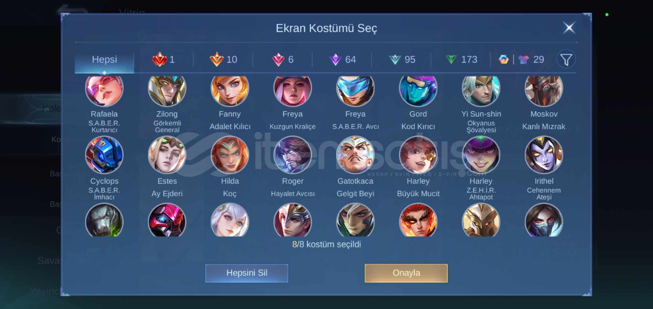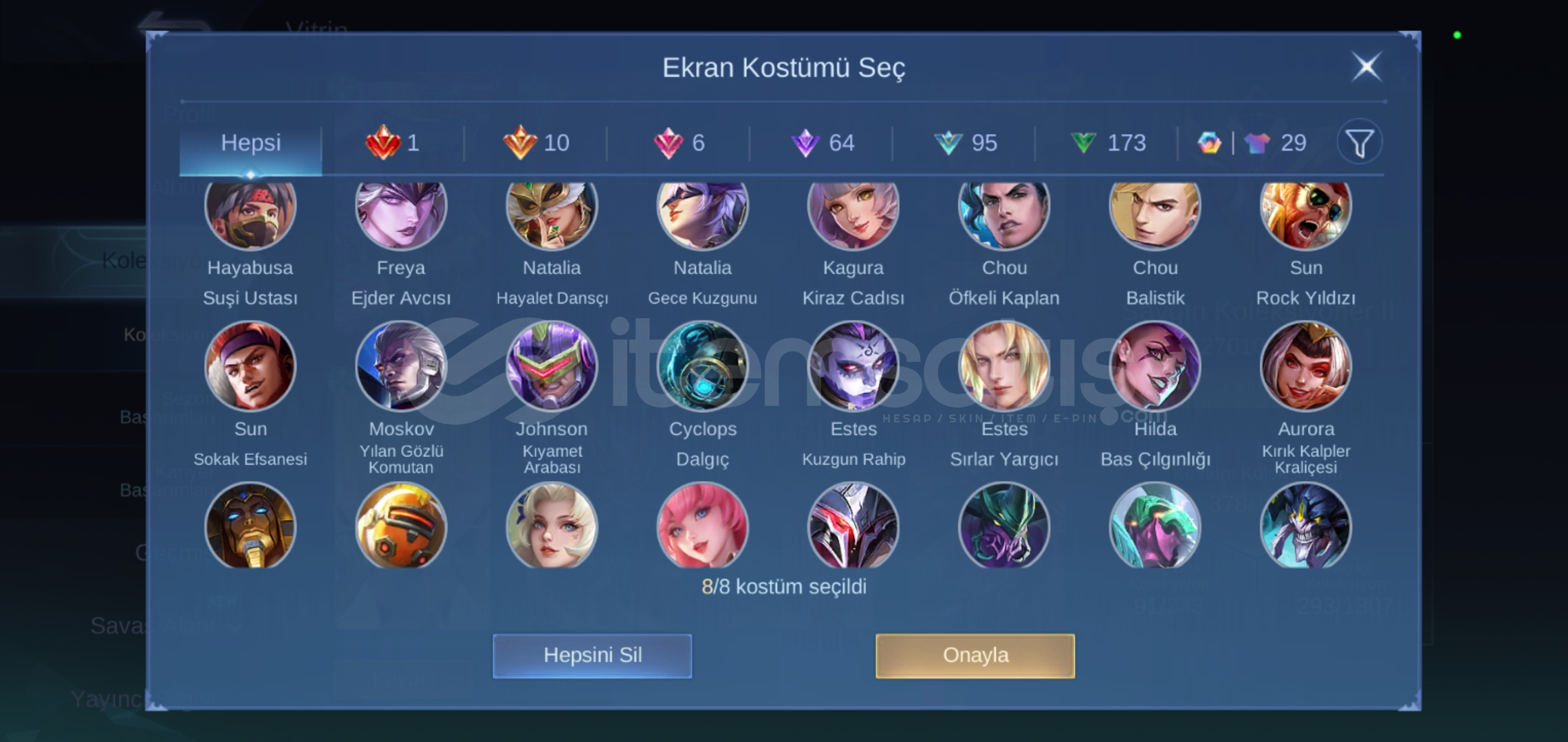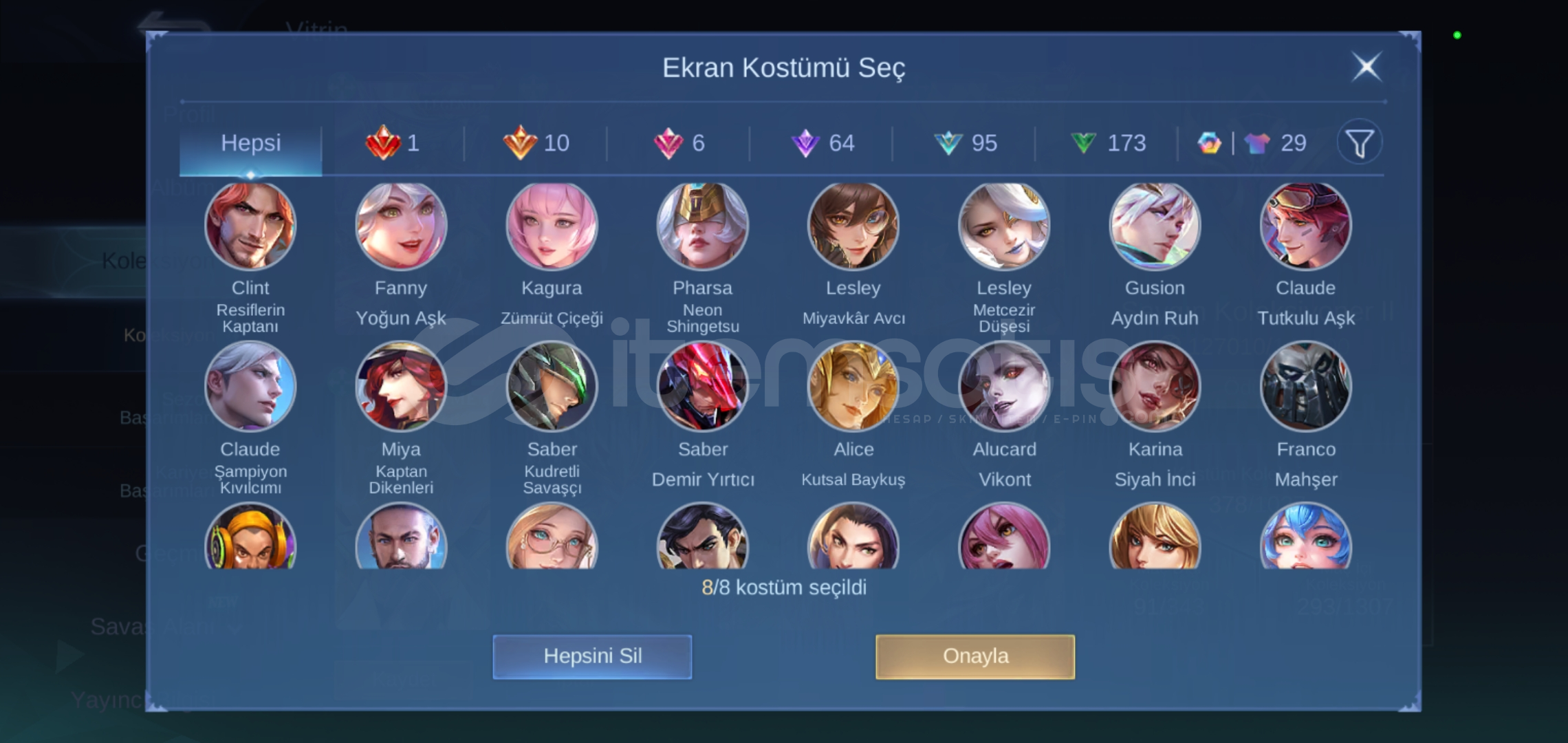 Hesap resimdeki gibidir. Moonton'a bağlı gmail devri ile teslim. >>>Moonton'a bağlı olan Gmail'e giriş yapıp şifre değiştirip kurtarma bağlar ve cihaz oturumundan beni atarak devir alırsınız. HESAP %100 SİZİN OLUR.YAZARKEN HANGİ İLANI SORDUĞUNUZU BELİRTİRSENİZ SEVİNİRİM. BİRDEN FAZLA İLANIM MEVCUTTUR İSTEDİĞİNİZİ SORABİLİRSİ...