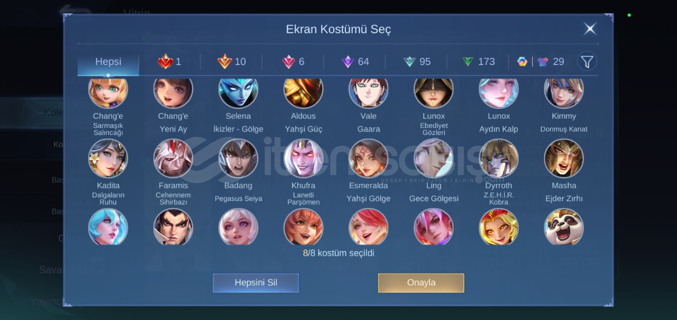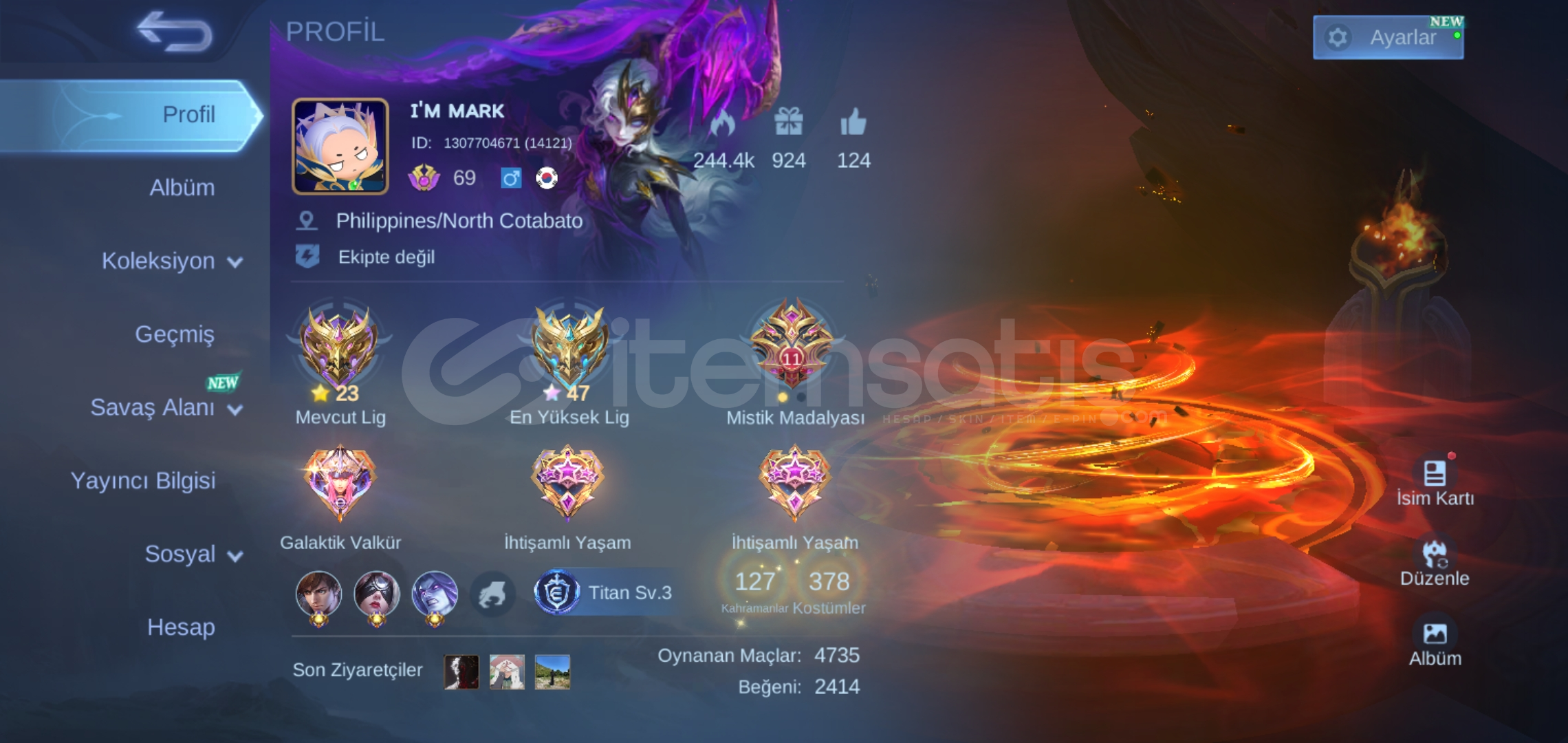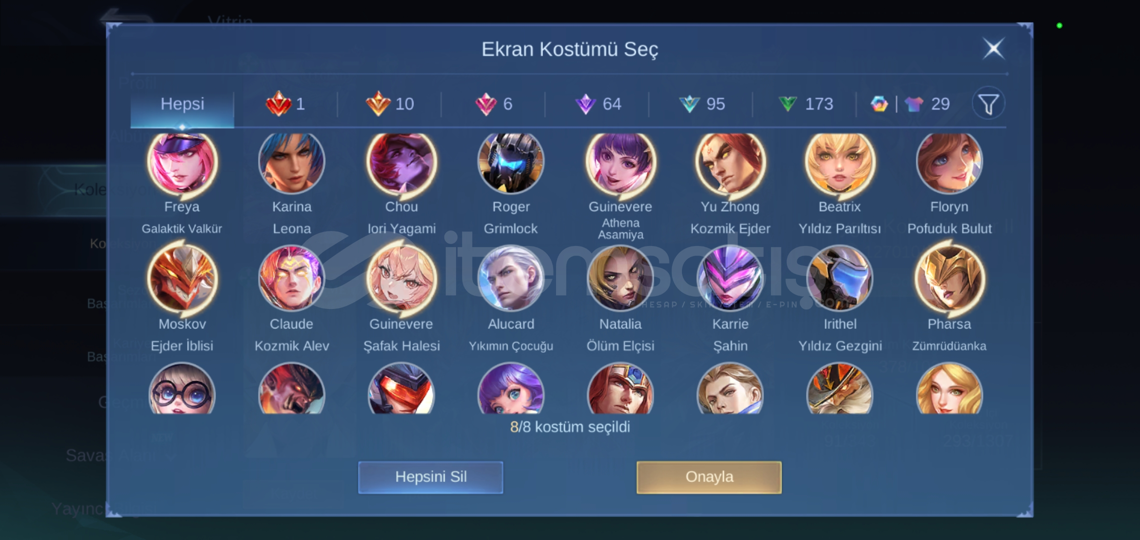 Hesap resimdeki gibidir. Moonton'a bağlı gmail devri ile teslim. >>>Moonton'a bağlı olan Gmail'e giriş yapıp şifre değiştirip kurtarma bağlar ve cihaz oturumundan beni atarak devir alırsınız. HESAP %100 SİZİN OLUR.YAZARKEN HANGİ İLANI SORDUĞUNUZU BELİRTİRSENİZ SEVİNİRİM. BİRDEN FAZLA İLANIM MEVCUTTUR İSTEDİĞİNİZİ SORABİLİRSİ...