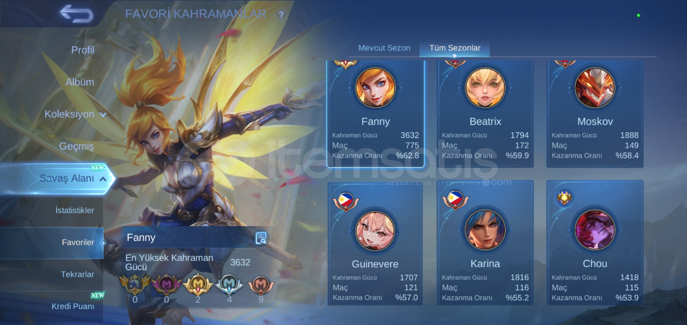 Fanny main dolu hesap KOF ASP ne ararsan var
