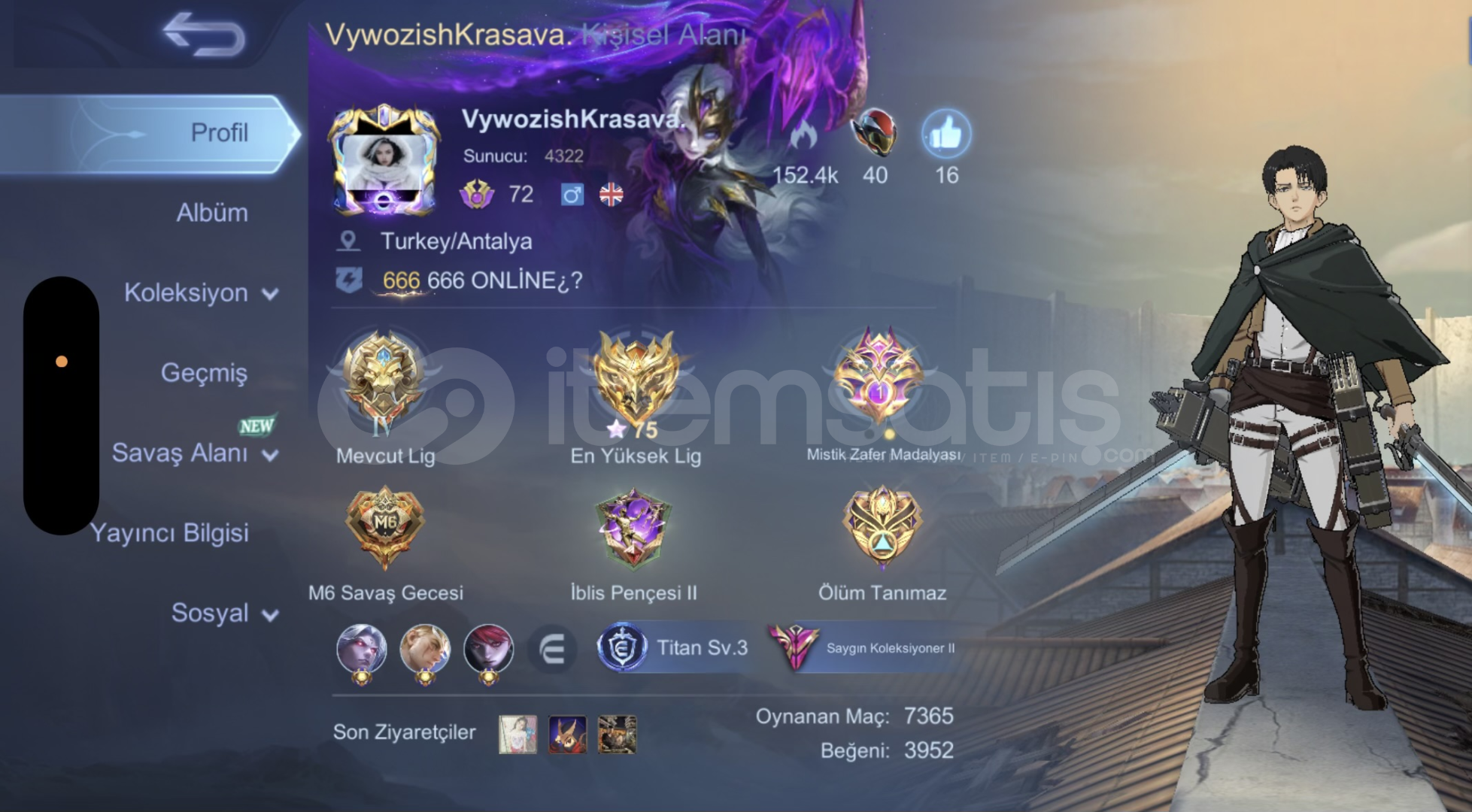 Mobile Legends hesabımı satıyorum.Hesap dolu dolu, efsane kostümler mevcut.Tüm detaylar ve kostümler ilan fotoğraflarında.Emek verilmiş, tertemiz hesap.Ciddi alıcılar yazsın,Kaçıran üzülür 👀🔥