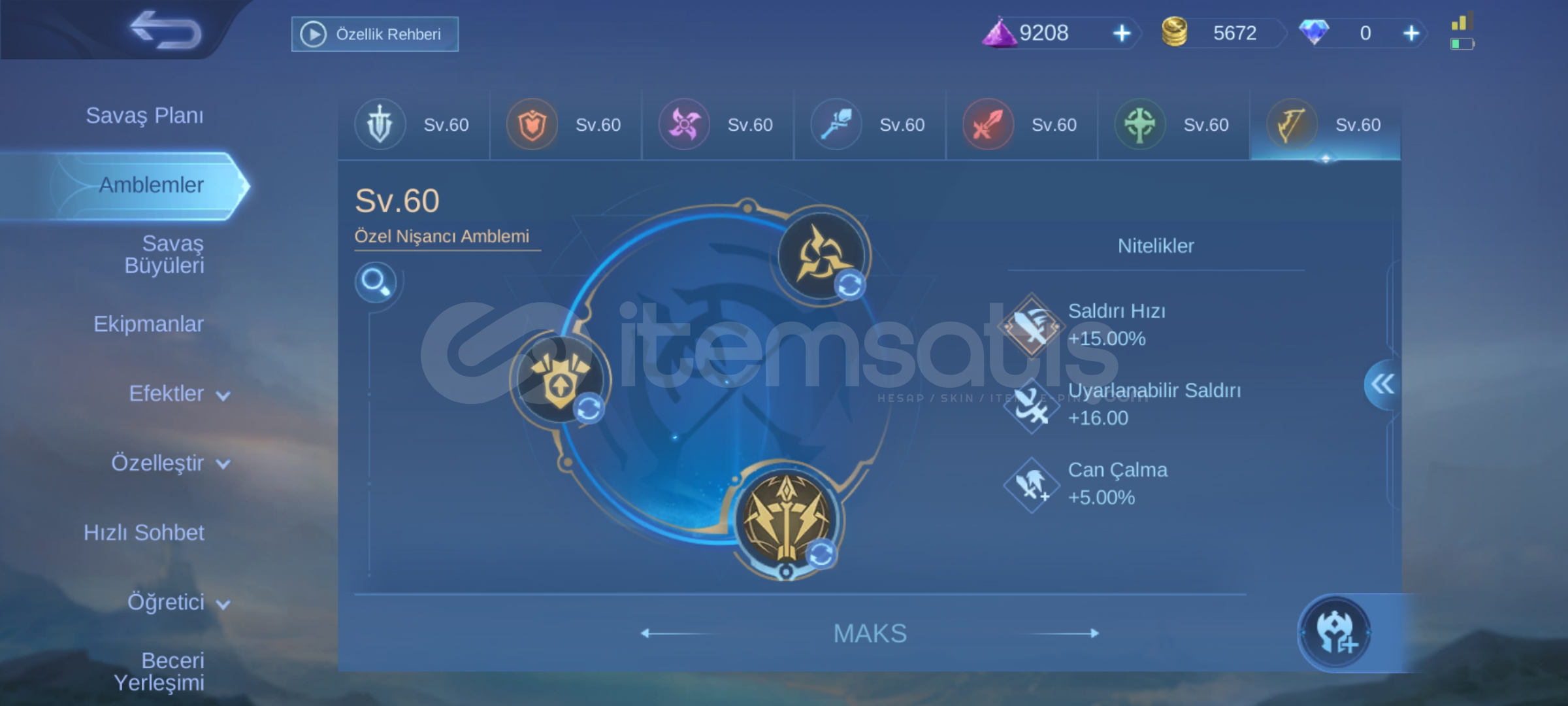 Tüm emblemler max olduğu için direkt rekabetçi seviyede oynamaya uygundur.