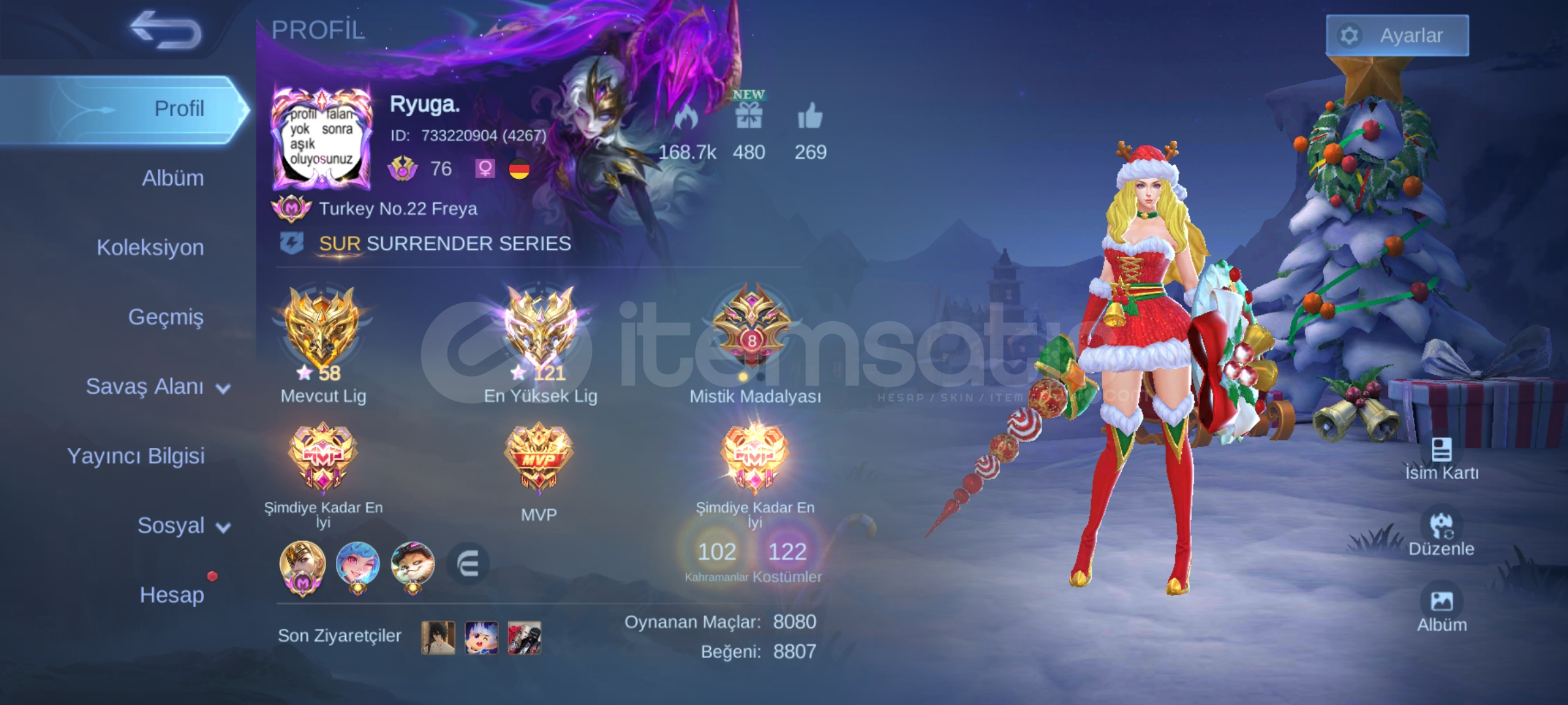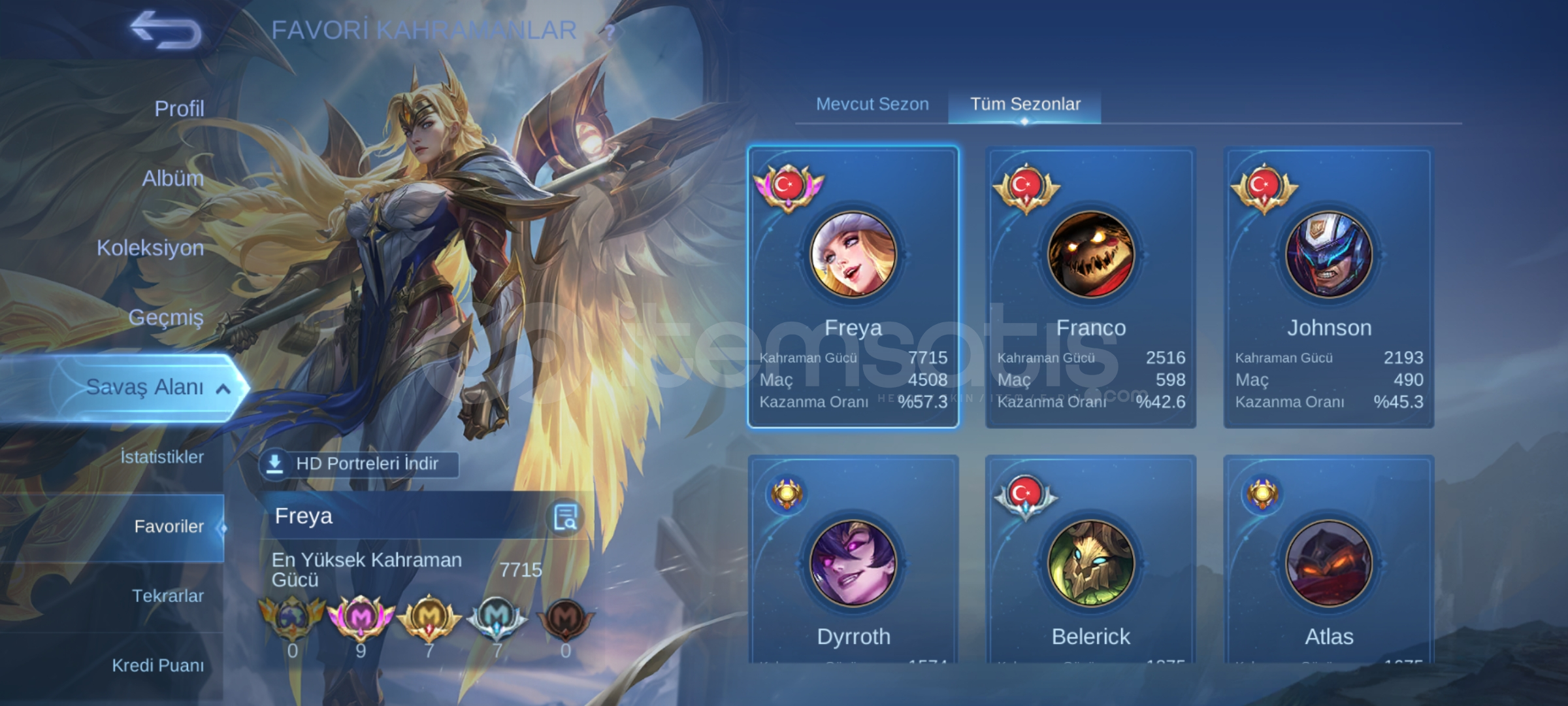 3 yıldır aktif kullanılan, sorunsuz, ban geçmişi olmayan, yüksek performanslı bir MLBB hesabıdır.Tüm emblemler max olduğu için direkt rekabetçi seviyede oynamaya uygundur.Hesap düzenli oynandığı için MMR oldukça iyidir.Freya TürkHero MMR global ve TR listesinde görünür seviyedeHesap en yüksek ligi görmüş durumdaRanked geçmişitemizdir.Tü...