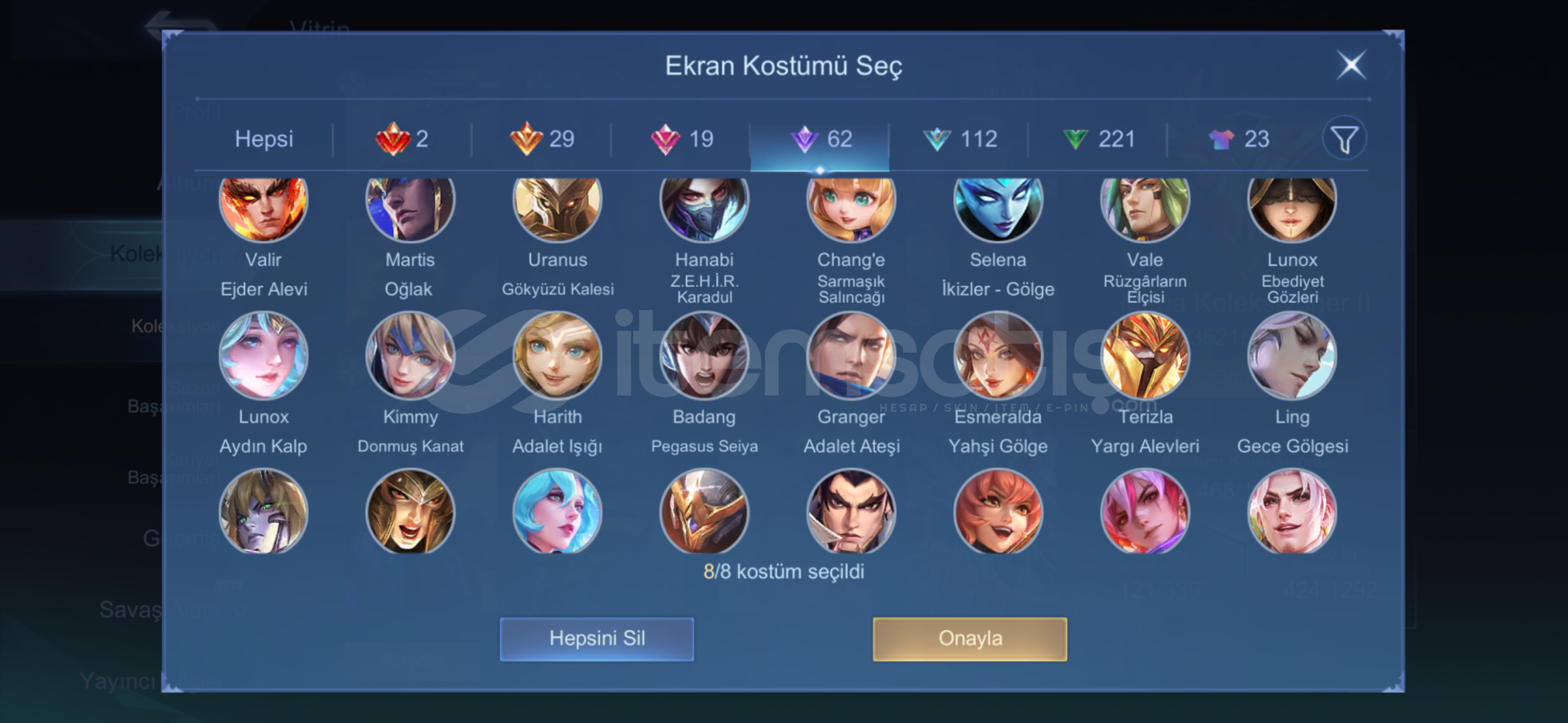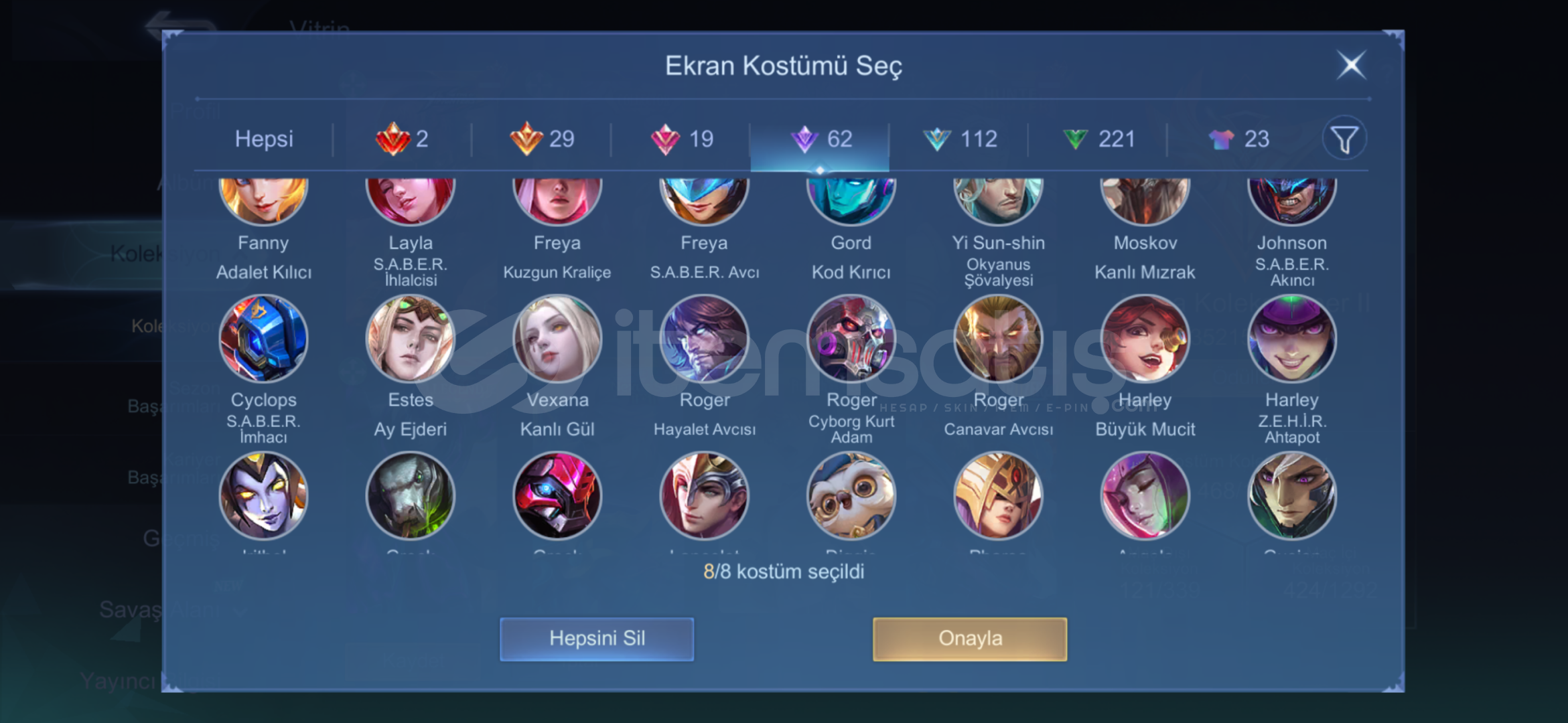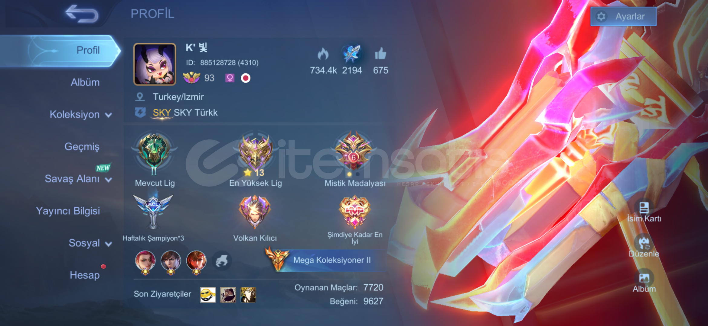 93 level 468 KOSTÜM18 günlük elmas aboneligi devam ediyor100 den fazla avatar1 tane 300 elmaslik yildiz uyelik ve 700 liralik premium yildiz uyelik mevcut ister kullanin ister hediye edebiliyorsunuzTESLA KULESİ ACIK DEGERİ 10 bin elmas2 legend GUS TA VE ALUCARD DA ACİK+ (217 adet büyü cekirdegi mevcut 1 tane daha istediginiz legendi ALABİLİRSİNİZHesabin kendi sahibiyim 5-6 yillik hesappek zamanim kalmadigi icin satiyorumher herodan en a...