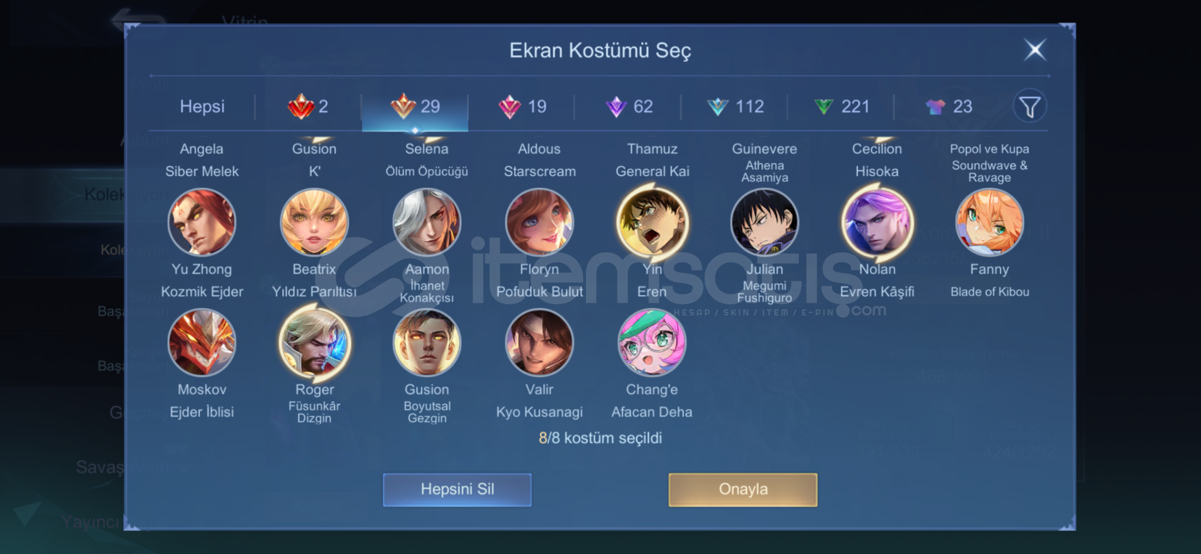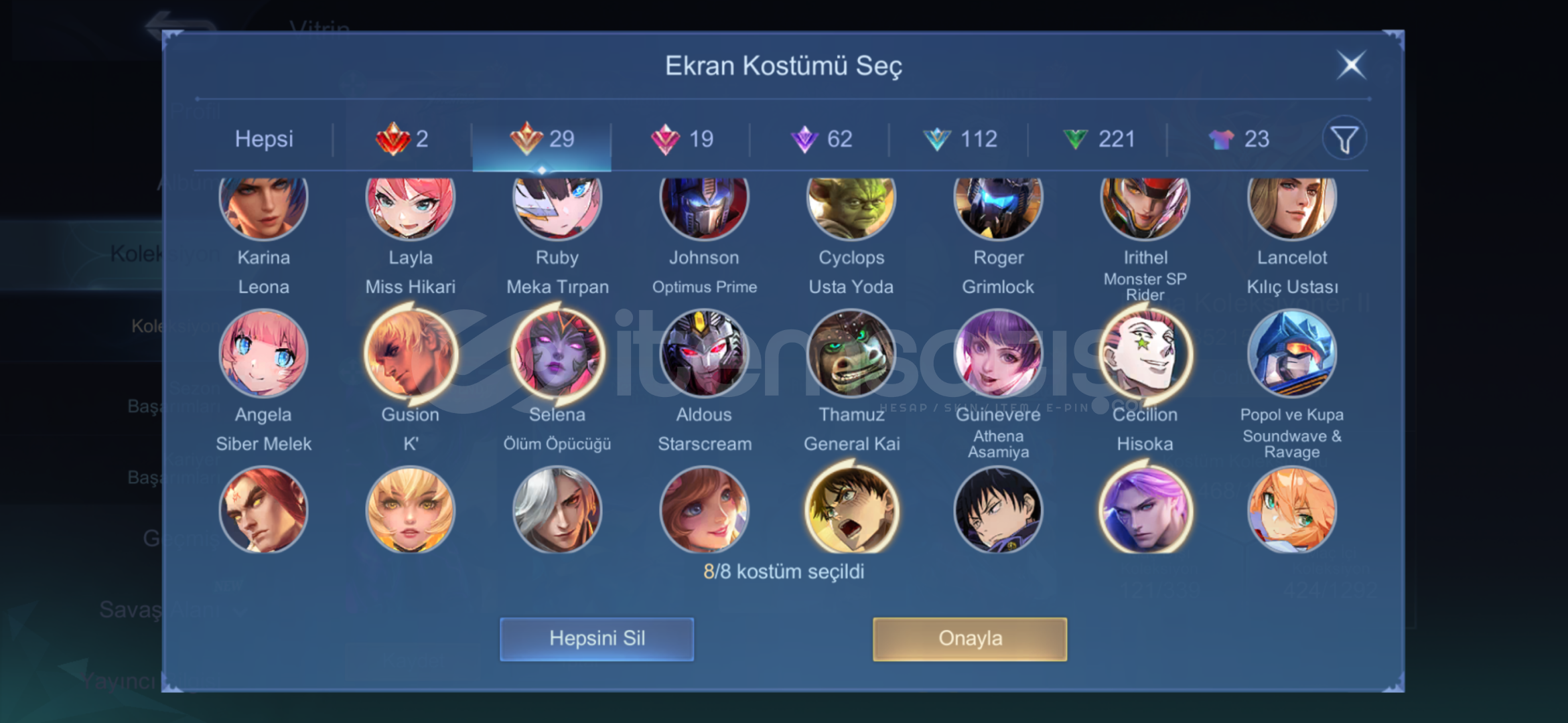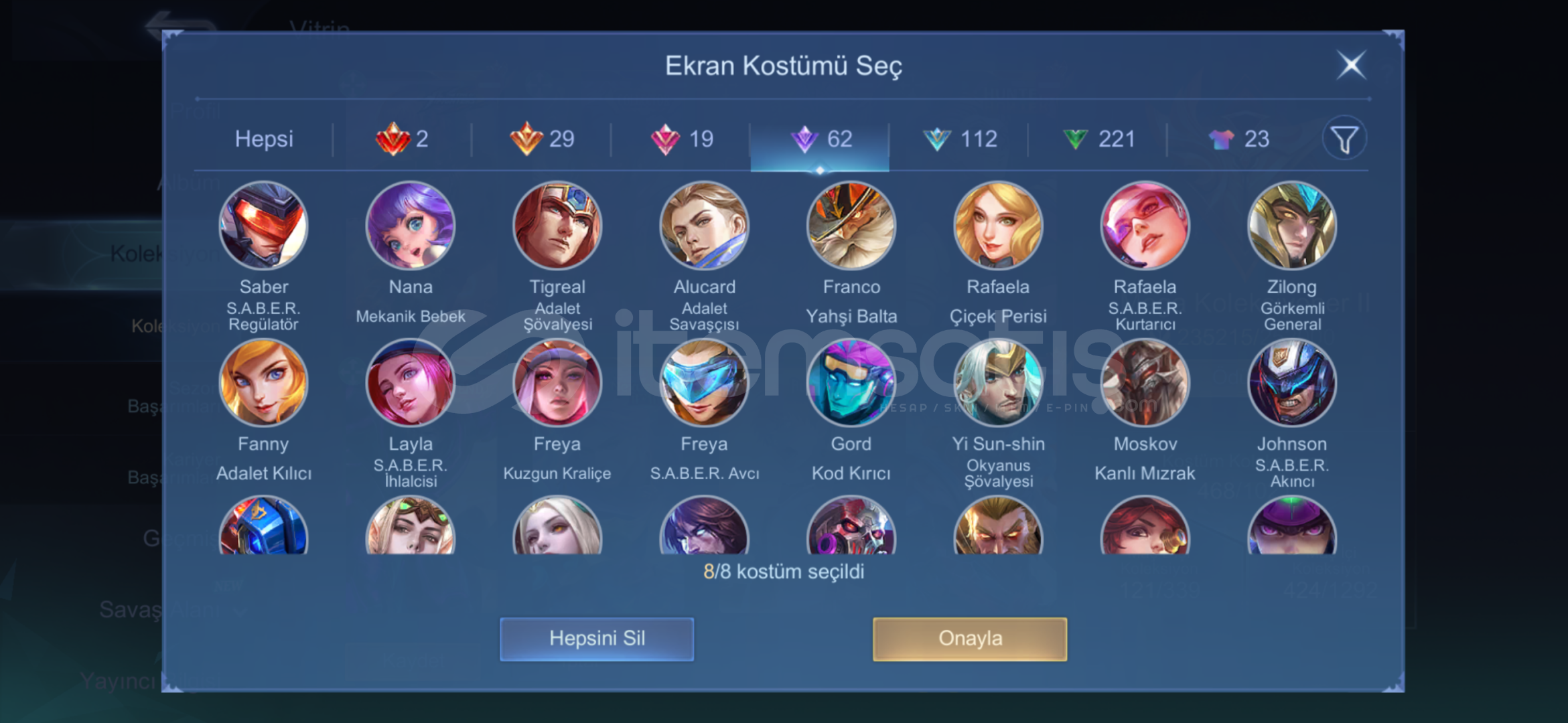 93 level 468 KOSTÜM18 günlük elmas aboneligi devam ediyor100 den fazla avatar1 tane 300 elmaslik yildiz uyelik ve 700 liralik premium yildiz uyelik mevcut ister kullanin ister hediye edebiliyorsunuzTESLA KULESİ ACIK DEGERİ 10 bin elmas2 legend GUS TA VE ALUCARD DA ACİK+ (217 adet büyü cekirdegi mevcut 1 tane daha istediginiz legendi ALABİLİRSİNİZHesabin kendi sahibiyim 5-6 yillik hesappek zamanim kalmadigi icin satiyorumher herodan en a...