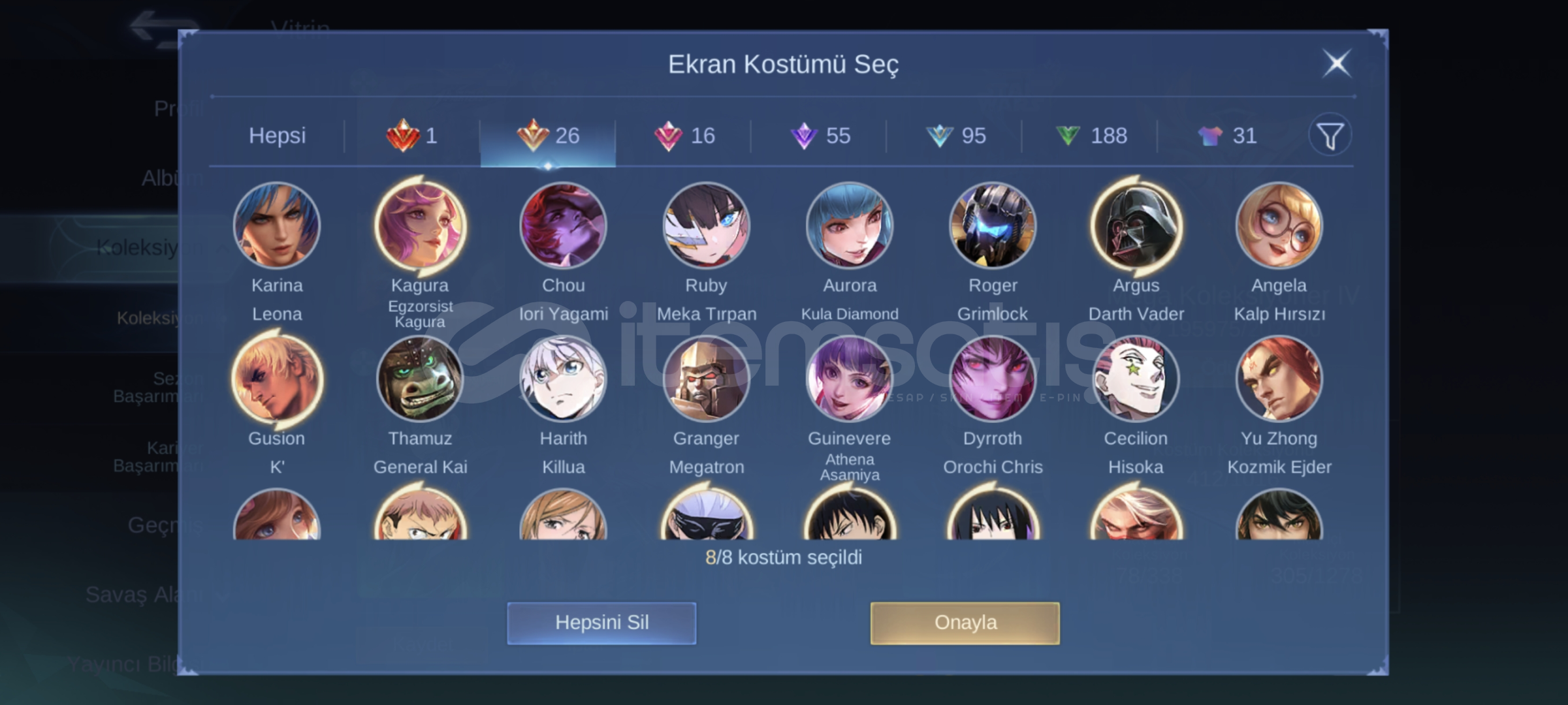 Birbirinden güzel kostümler Kahramanlar amblemler full 3 tane epic üsse ışınlanma Tek bağ sizin eposta adresinize teslim edilecektir