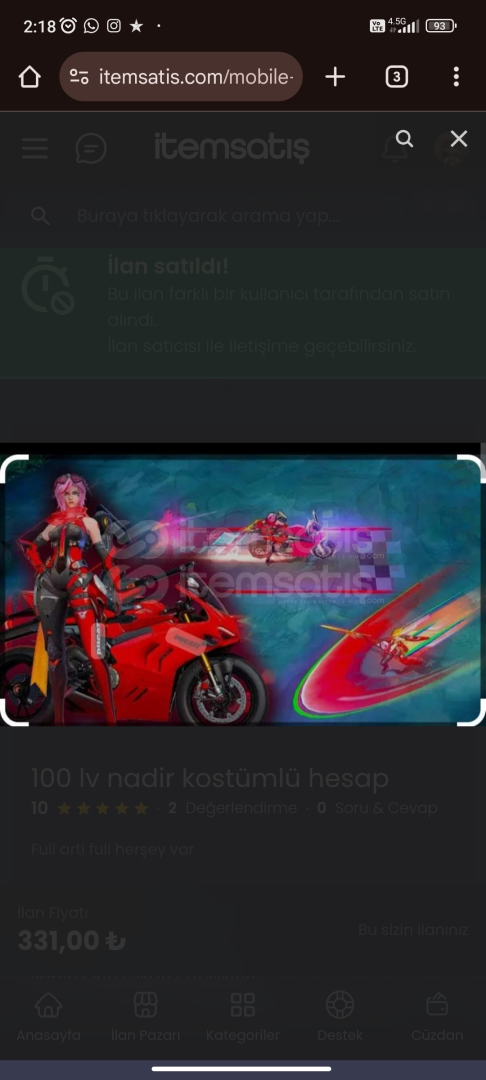 • Satın alacağınız bu ilan 3 Saat içerisinde satıcı tarafından teslim edilecektir..