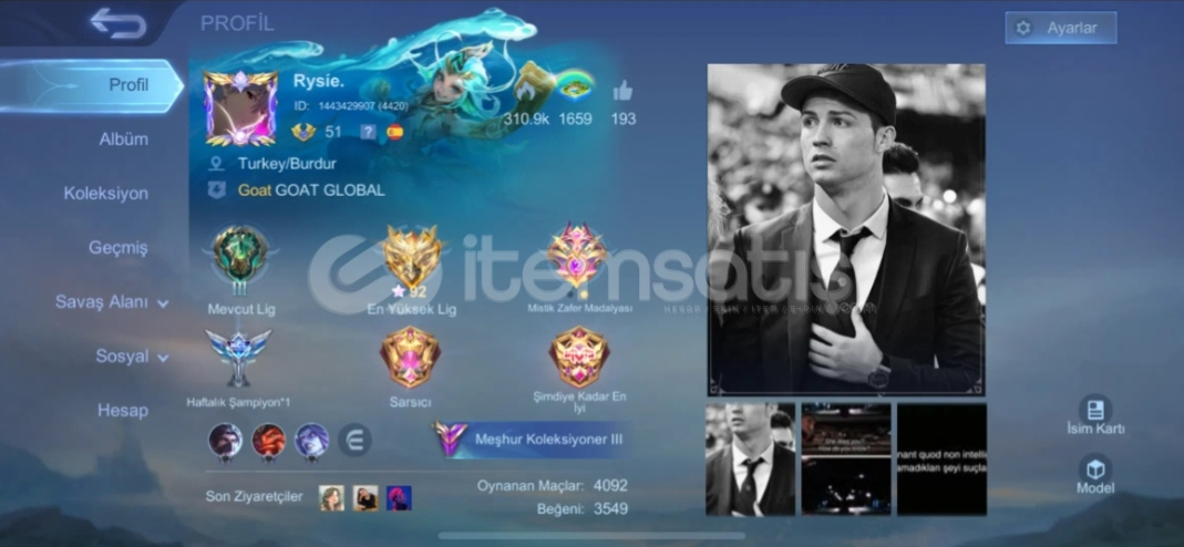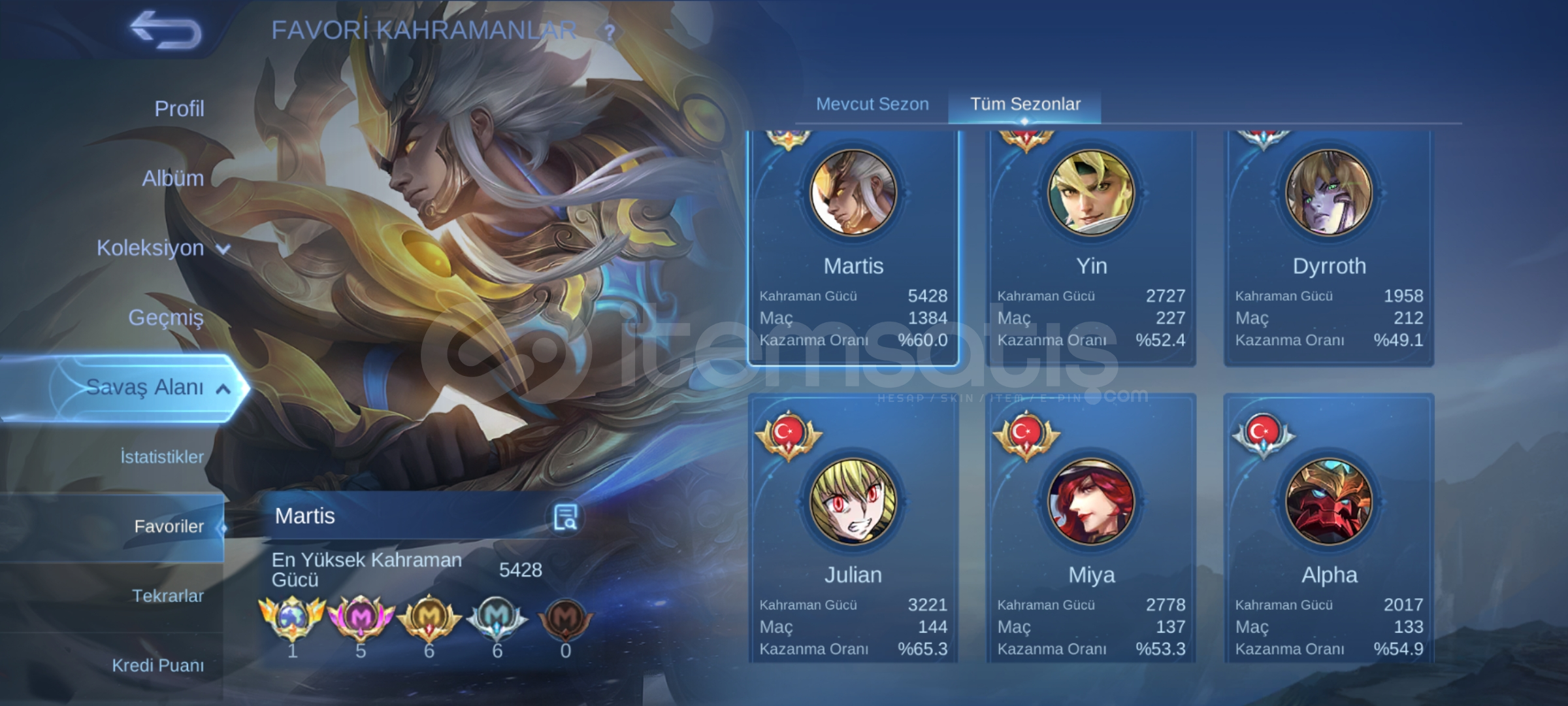 EDERİNDEN UCUZA!Ayrıntılı Bilgi İçin Dm📩Hesap Tr 🇹🇷 Sunuculudur.Ölü Bağ vs. Yoktur Sorun ÇıkmazHesapta Toplam 9 Kez Yıldız Üyelik Açılmıştır.Global 80 Tag (Martis) 60 OranHAYABUSA DENEY 21URANUS LUCKYBOXLİNG M-WORLDCHOU KOFSELENA ZENİTHRUBY ASPİRANTKARİNA KOFMARTİS LUCKYBOXALPHA LUCKYBOXMARTİS ZODİACNATALİ COLLECTORVe daha fazlas...