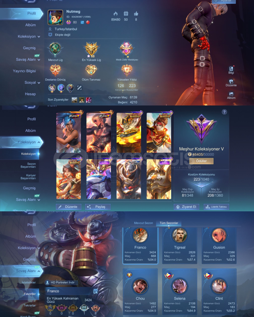 Sitenin En Büyük ve En Güvenilir Mobile Legends SatıcısındanEn Uygun Fiyat Garantisiyle• Yüksek işlem hacmine sahip güvenilir satıcı• 400+ başarılı işlem• Moonton’a bağlı Gmail ile güvenli teslim• İşlem öncesi & sonrası destek• Asya elmasHesapta 3. taraf bağlantıları mevcuttur. Aktif güvenlik nedeniyle şu an değiştirilemem...