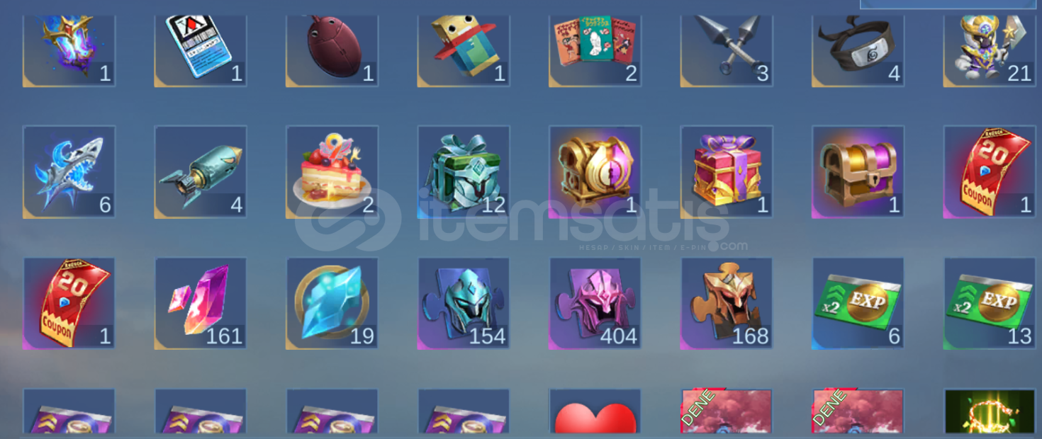 272 kostümlümistik kademeli.moonton e posta ile devredilicektir.Fırtına Tanrısının mührü base efekti.full amblemli.klan hediye edilicektir.161 Büyü ParçacığıBir Sürü Hediyelik Eşyaalıcısına şimdiden hayırlı olsun pazarlık vardır.