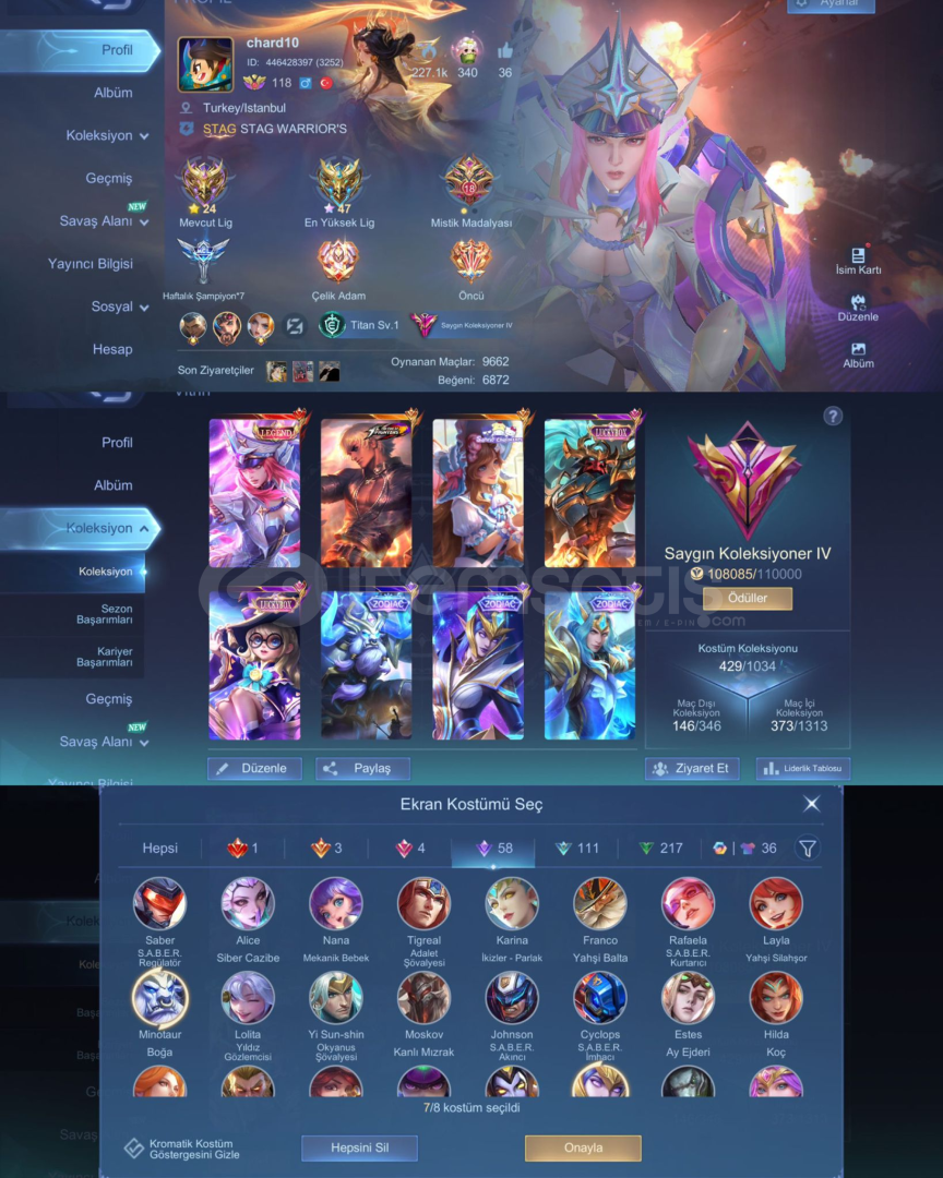 SİTENİN EN BÜYÜK VE EN GÜVENİLİR MOBİLE LEGENDS HESAP SATICISINDAN EN UCUZ FİYAT GARANTİSİYLE +300 BAŞARILI İŞLEM İŞLEM ÖNCESİ SONRASI SONSUZ HİZMET HESAP MAİL DEVRİ İLE TESLİM EDİLECEKTİR.ASIA ELMAS.HESAPTA BAĞLAR MEVCUTTUR.GÜVENLİK AKTİF OLDUĞU İÇİN ŞUANLIK KALDIRILAMAMAKTIR.GÜVENLİK BİTTİ&...
