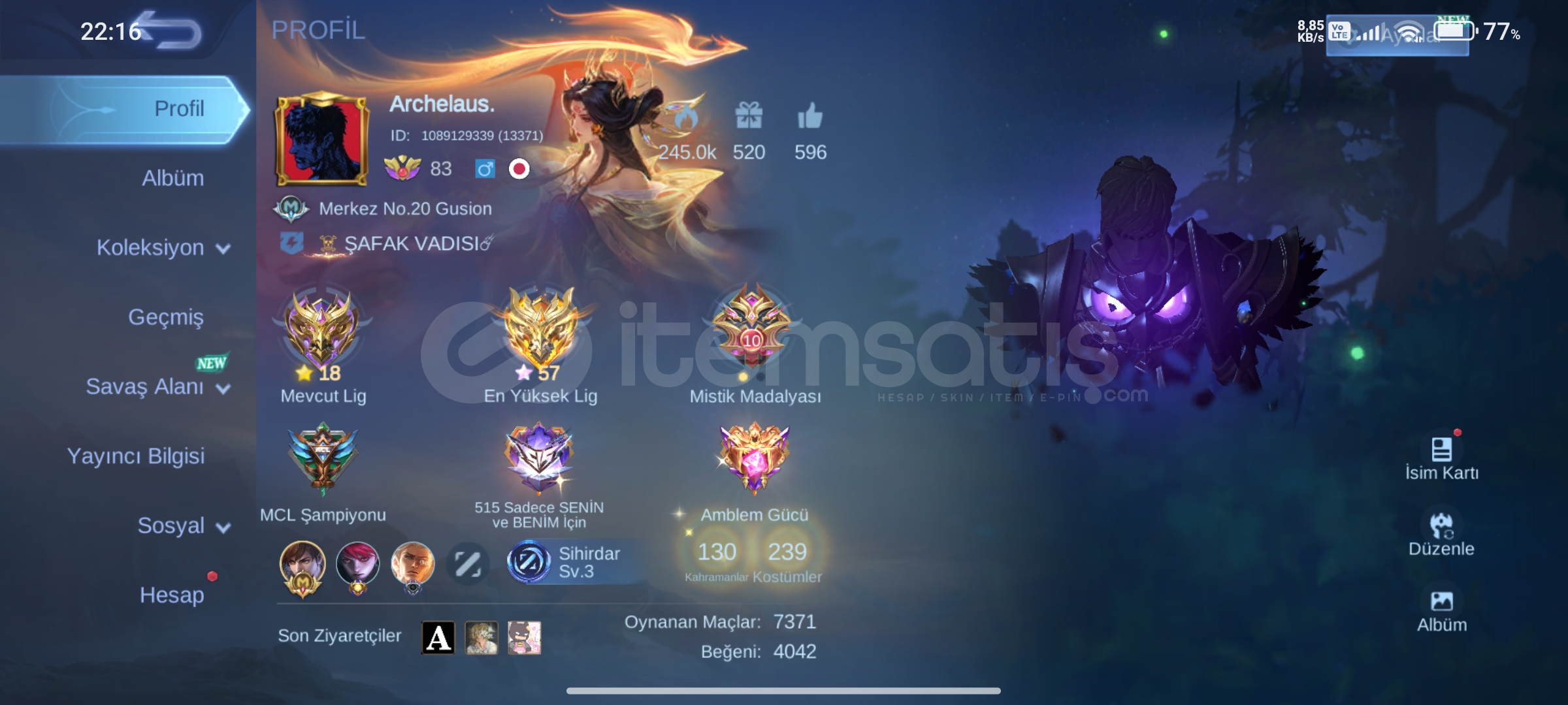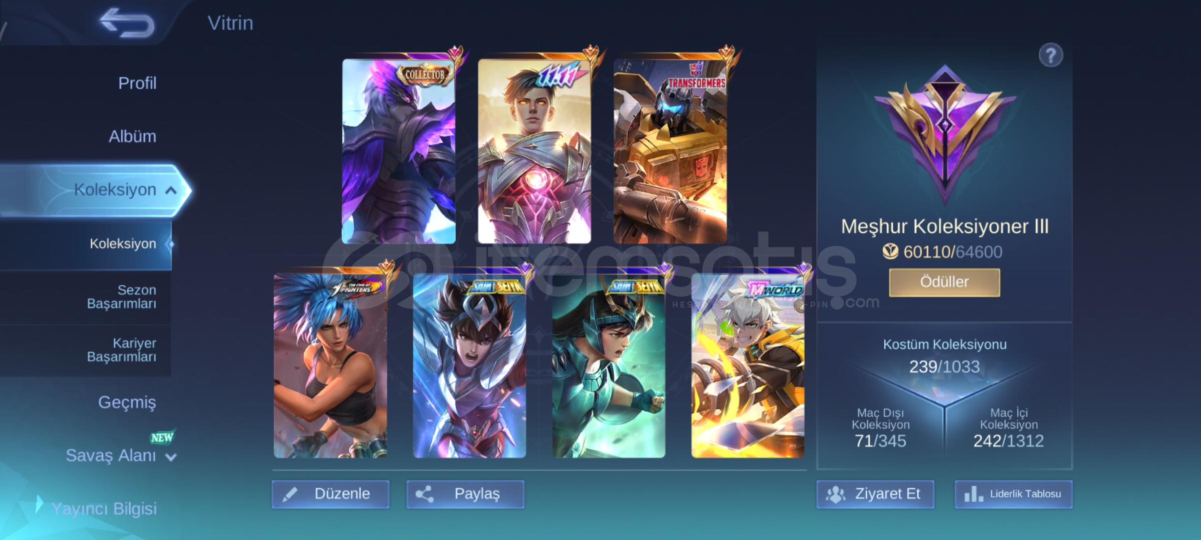 HESAPTA 239 KOSTÜM130 KARAKTER(HEPSİ VAR)AMBLEMLER FULL14 BASE EFFECT8 ELİMİNASYON EFFECTSAYISIZ EMOJİHESAP TESLİM MAIL DEVİR İLE OLACAKTIRGUVENLİK KİLİDİNİN BİTMESİNE 5 GUN VARDIR (İLAN PAYLAŞILDIĞI GÜNDEN İTİBAREN)BAĞLARIN HEPSİ TEMİZ SADECE MOONTON