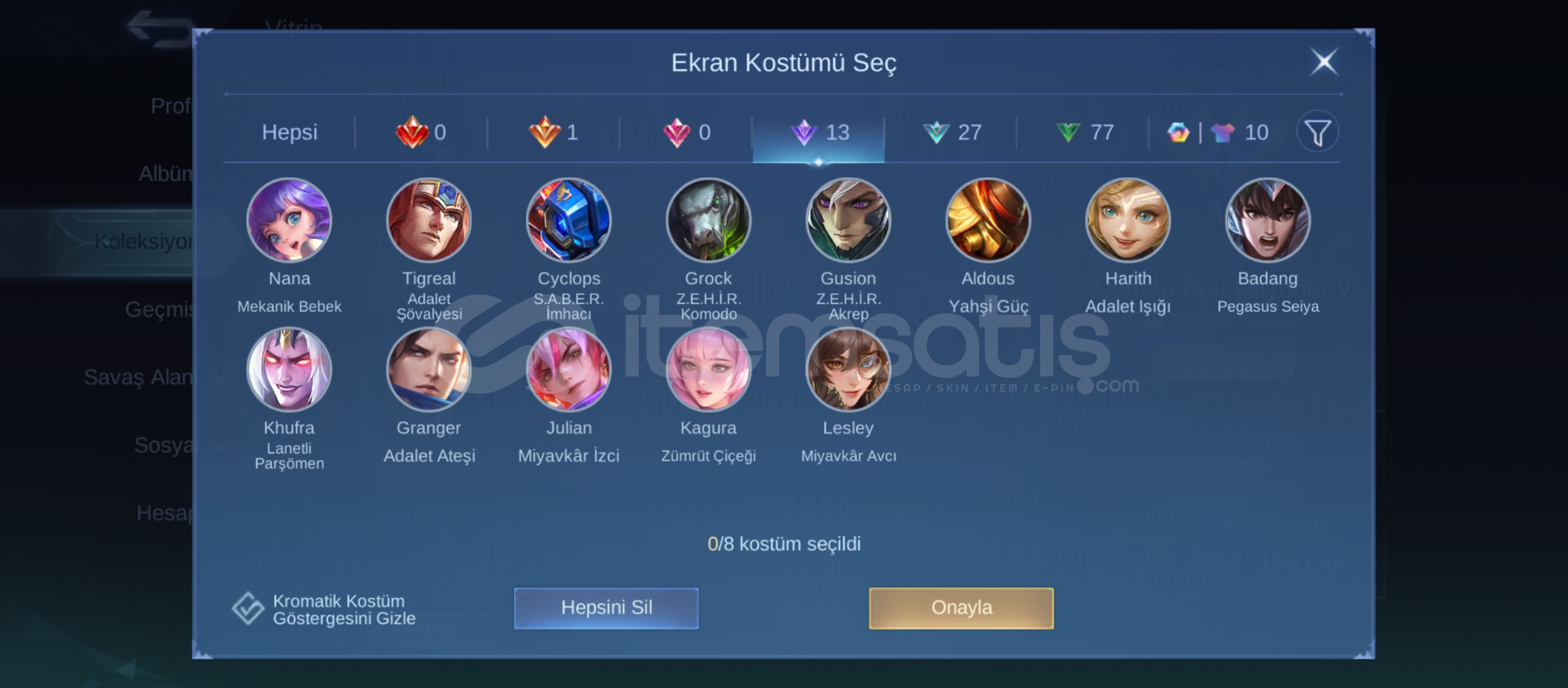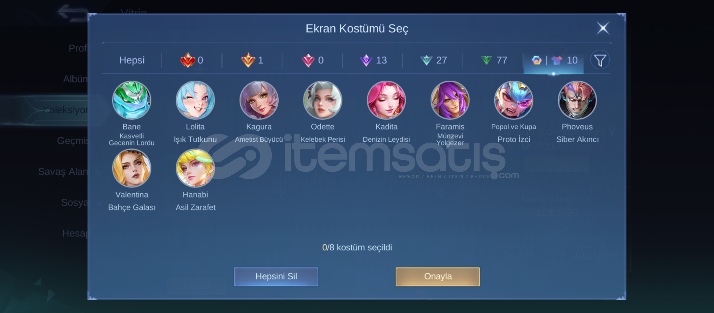 Pahalı bi fiyata satmıyorum zaten merak ettiğiniz bi soru varsa sorabilirsiniz hesabta 22 elmas mevcuttur görselde gördüğünüz gibi skinler vardır