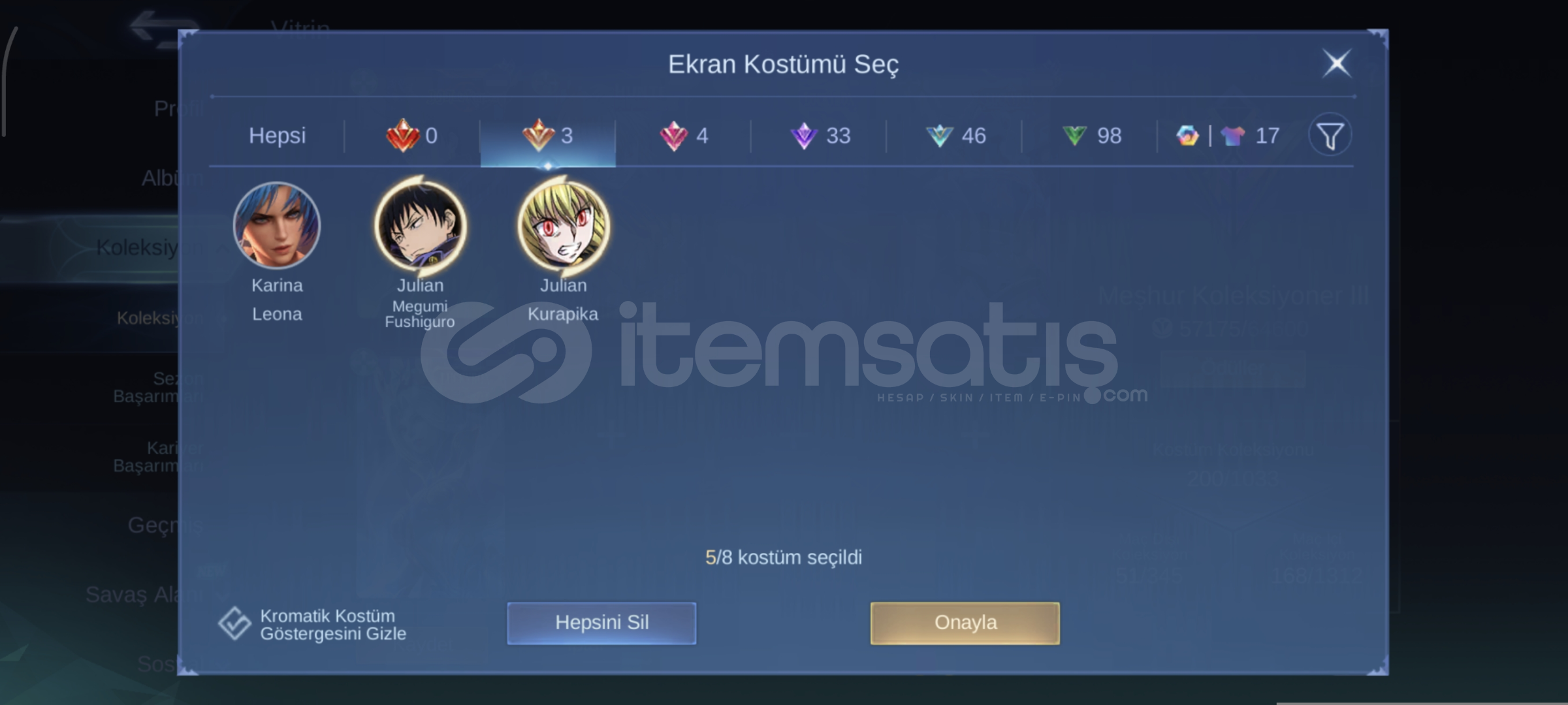Hesap tek bağ moontur devir yapılır karina kof ve Jul kostümleri bulunmaktadır