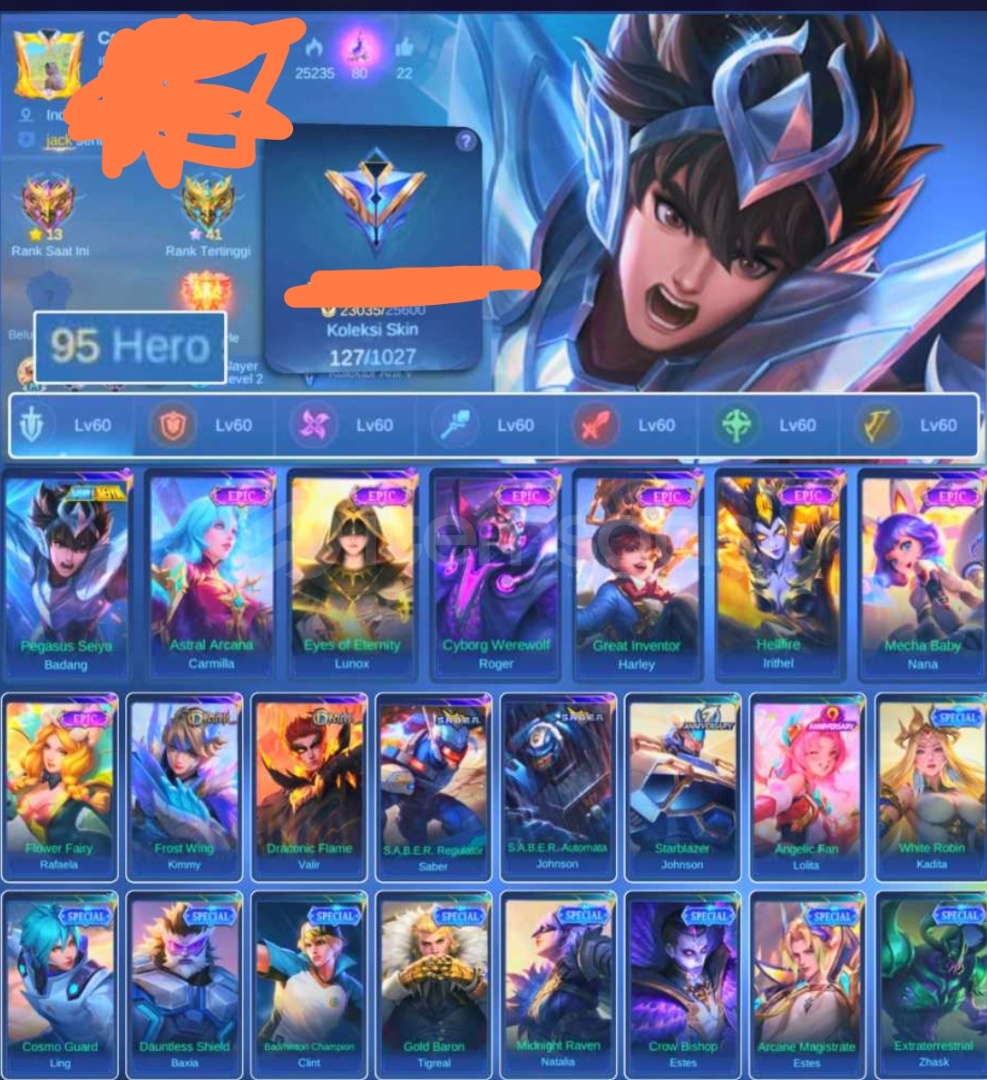 HERO 95 SKIN 127 | Amblem MAX | PENGASUS SEIYA BADANG | EPIC LUNOX | EPIC ROGER | ANINDA TESLİMAT