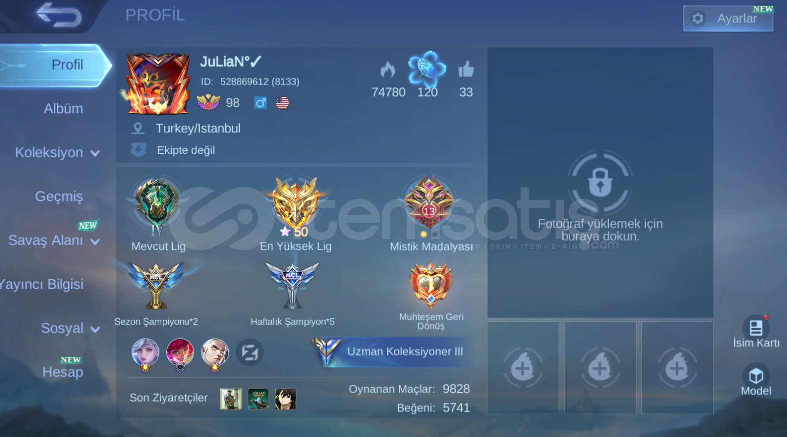 ✨Hero 119 | 149 Skin Amblem Max Mükemmel Hesap✨