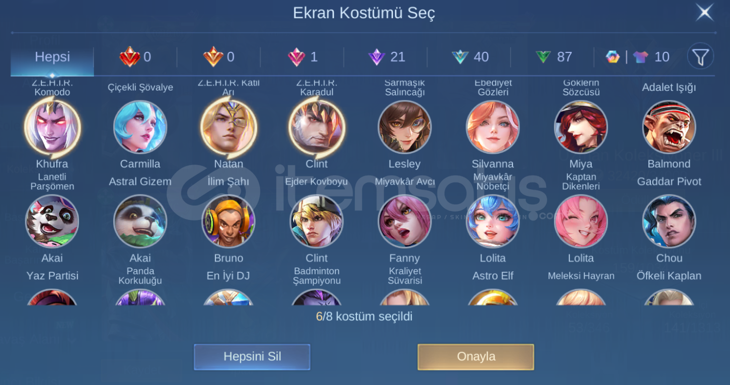 Hesaptaki kahramanların neredeyse hepsi açıktır. Amblem seviyesi maxtır. Kostüm doludur ve rankı yüksektir.