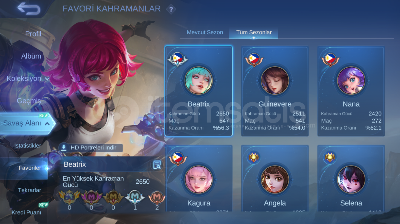 Hesaptaki kahramanların neredeyse hepsi acıktır . Amblem max Kostüm doludur Rankı Yüksektir ve Hesapta 331 💎Elmas Mevcuttur