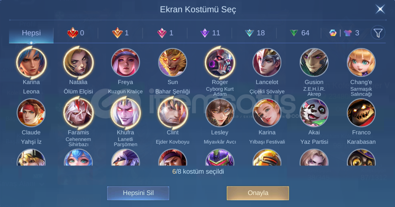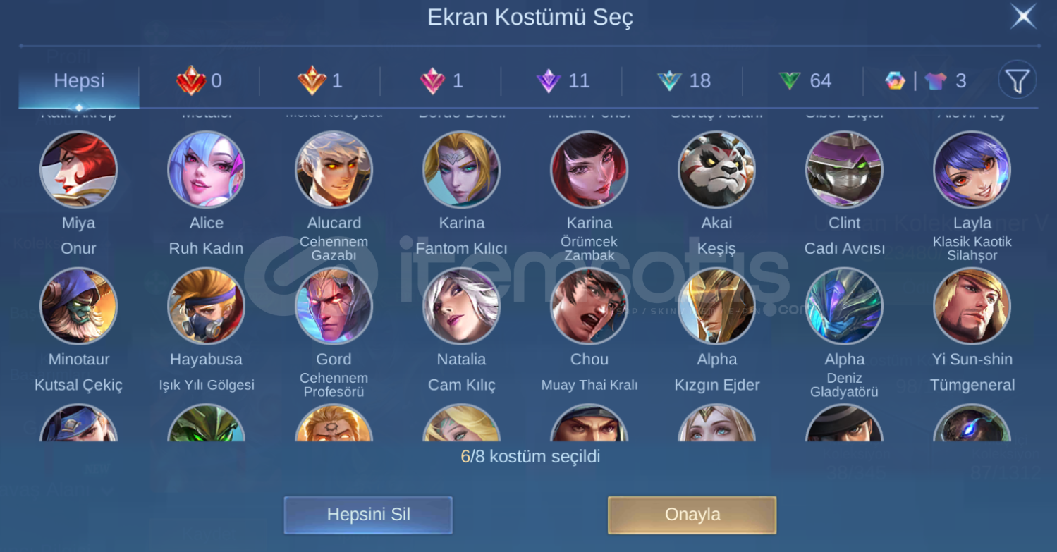 Hesaptaki kahramanların neredeyse hepsi açıktır. Amblem max Kostüm doludur.