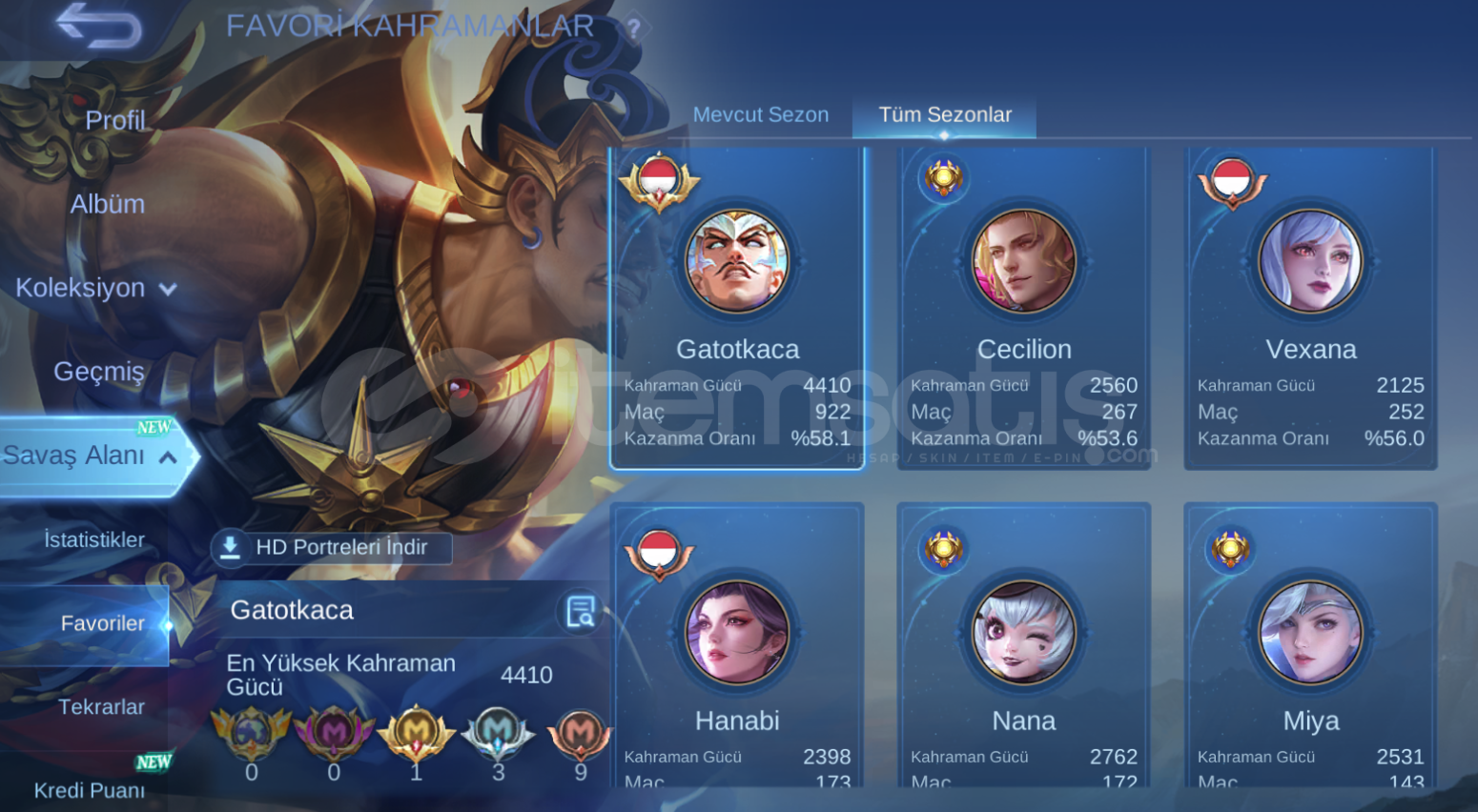 ✨Hero 89 | 135 Skin Amblem Max Mükemmel Hesap✨