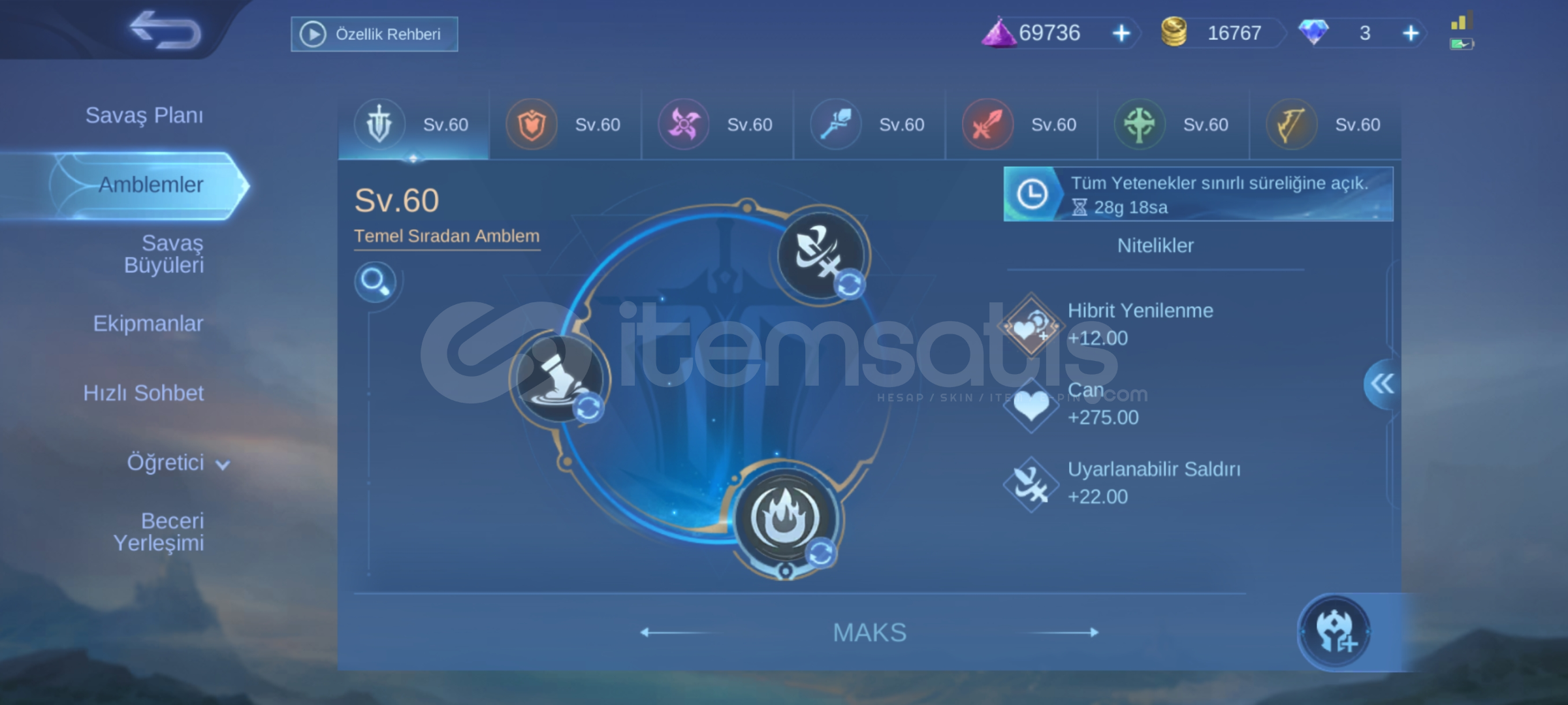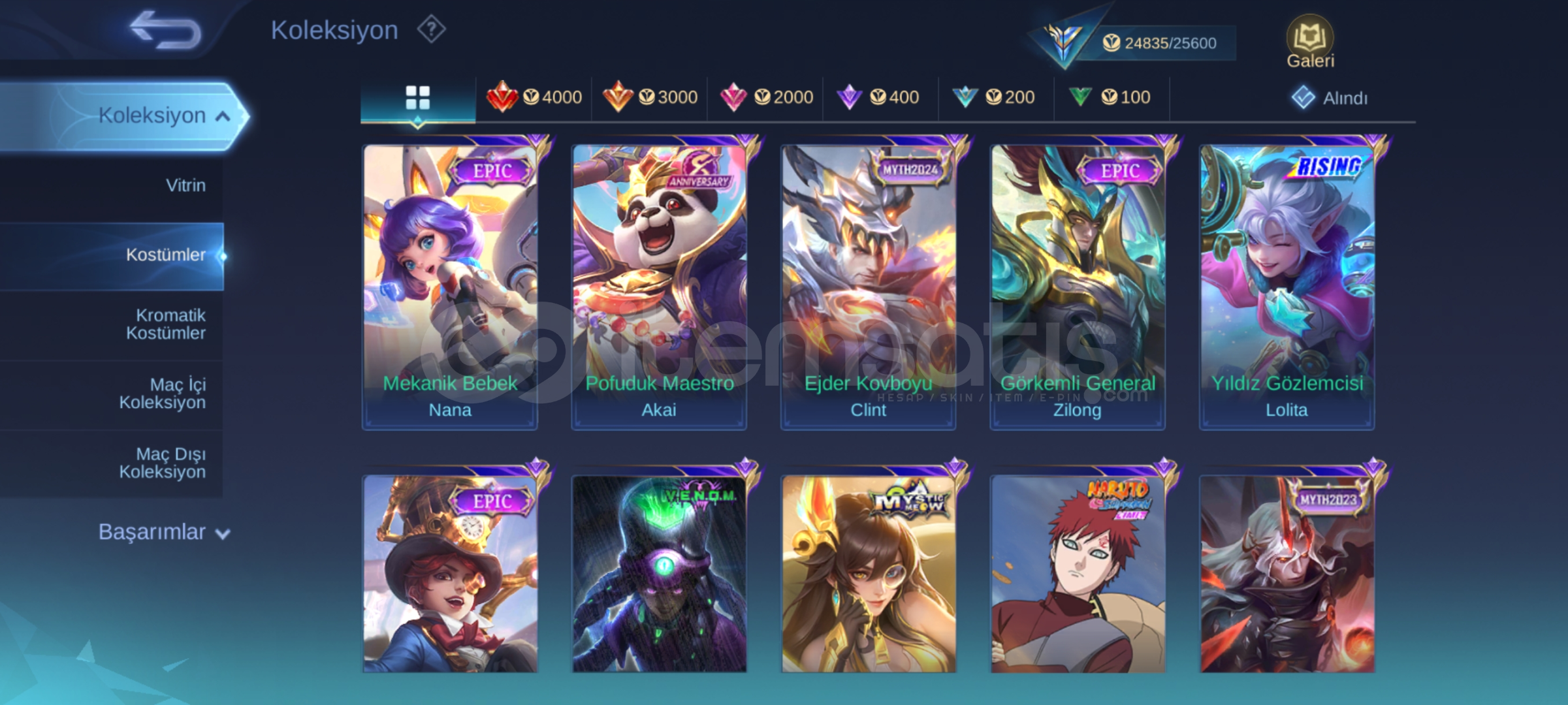 HERO 94 SKIN 140 | AMBLEMLER MAX | EPIC HERLEY | EPIC KHURA | VALE GARAOTOMATİK TESLİMAT MAİL VE MOONTON SİFRESİYLE BERABER.