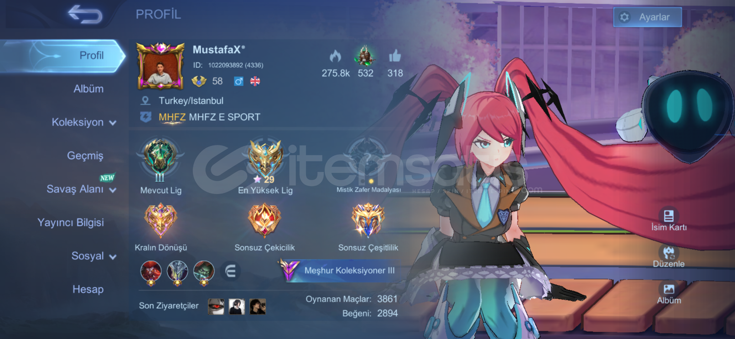 Hesap resimdeki gibidir. Tek bağ moonton, moonton’a bağlı E posta değişimi ile teslim.Not: 11 Aralık 2026 dan itibaren satılıktır.