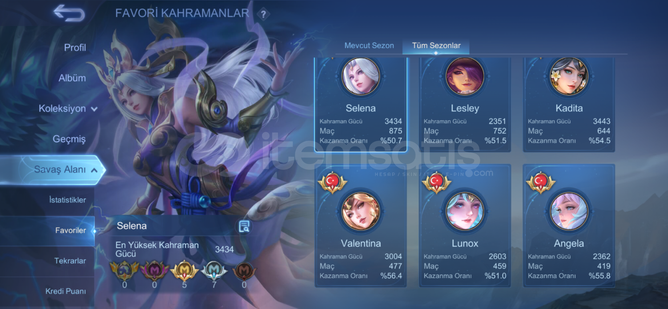 5 Legends Alpha, Lunox, Lesley, Saber, Valir,25 Seçkin32 Zarif95 Lüks168 Fevkalade239 SıradanGus/Masha/Karina KOF,Vexana/Selena ZENİTH, Layla/Ruby/Change/Lesley/Angela ASPİRANTS,Lancelot KISHIN DENSETSU,Valir/Badang SAINT SEİYA,Claude/Floryn SANRIO,Leomord DUCATI,X Borg 11.11,Cecilion HUNTER HUNTER,Julian JUJUTSU KAISEN,Suyou NARUTO,Claude/Beatrix PRİME,Aamon SOUL VESSELS,Kagura CLOUDS,Hanabi/Moskov ALLSTAR,Roger TRANSFORMERS,Zodiac skinleri FULLYıll...