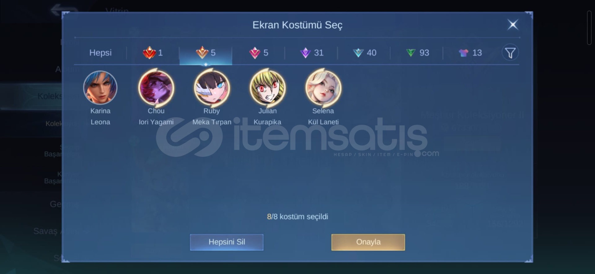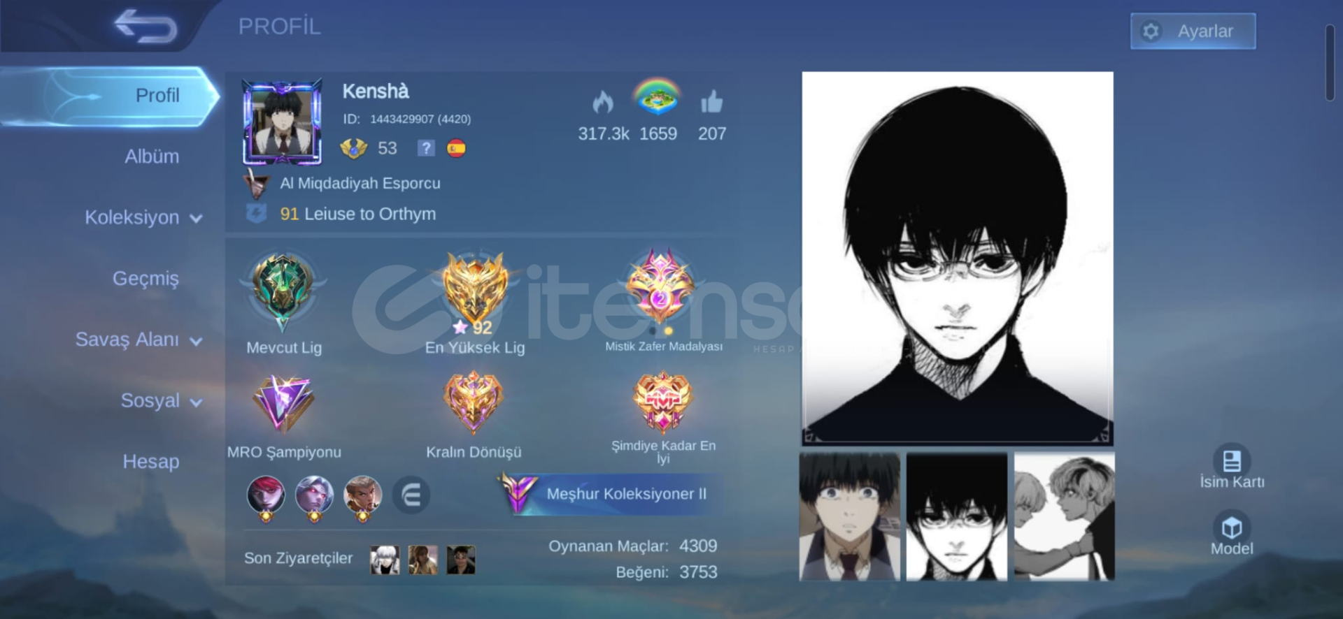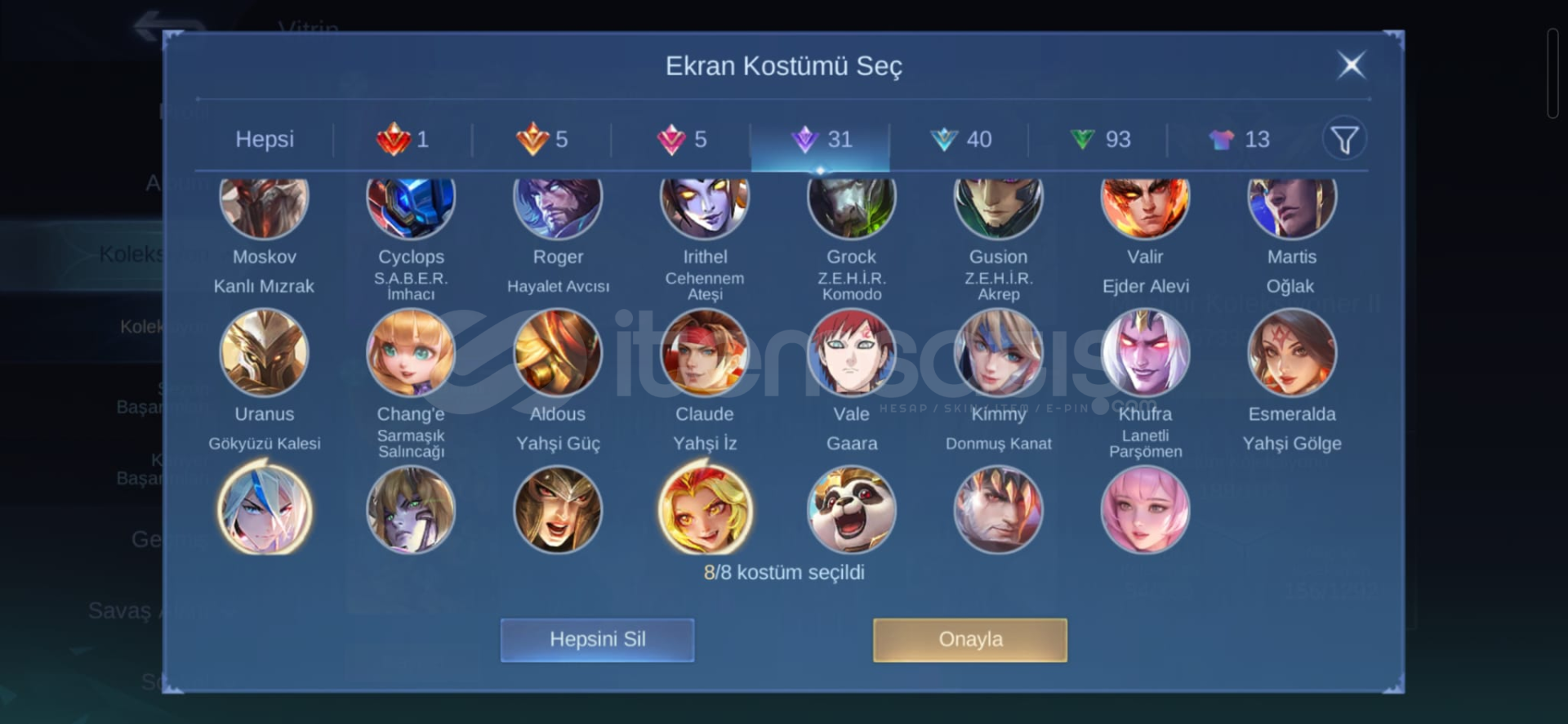 Öncelikle hesap tek bağdır moonton e postayı direkt size vericem eposta hiç kullanılmamıştırhesap martis maindir martis global 80 görmüş hesaptır martisin tüm skinleri nerdeyse fulldür levi hariçdeğerli skinler vardır