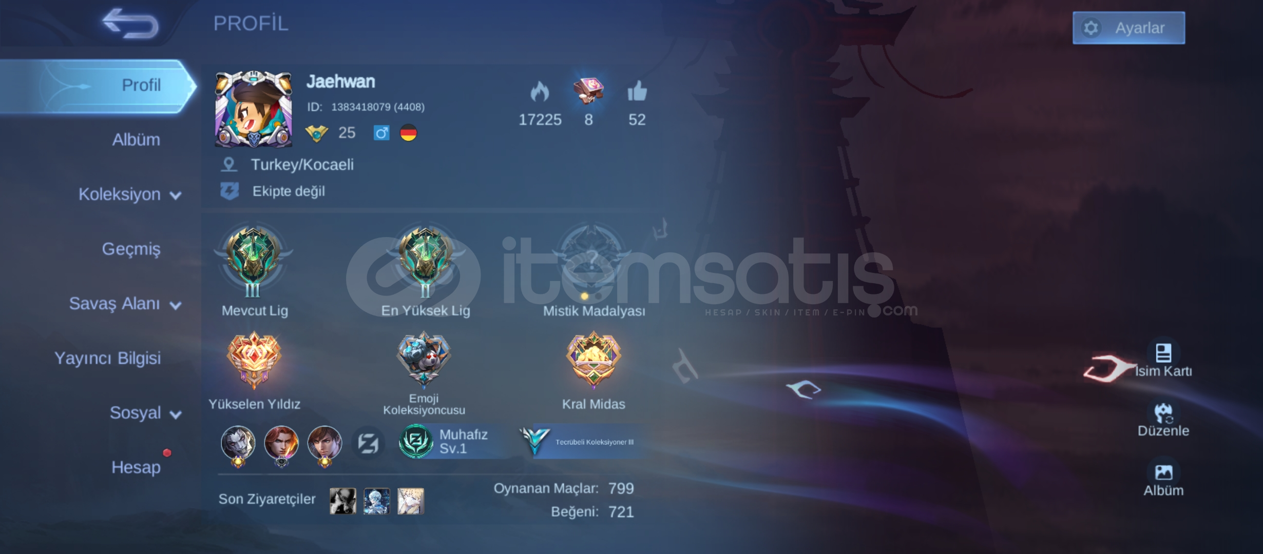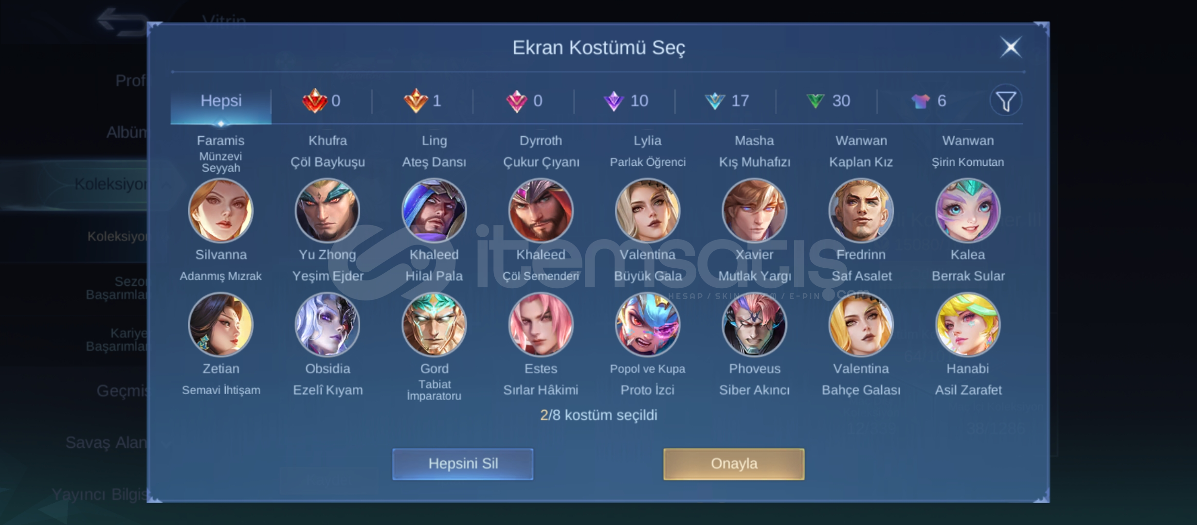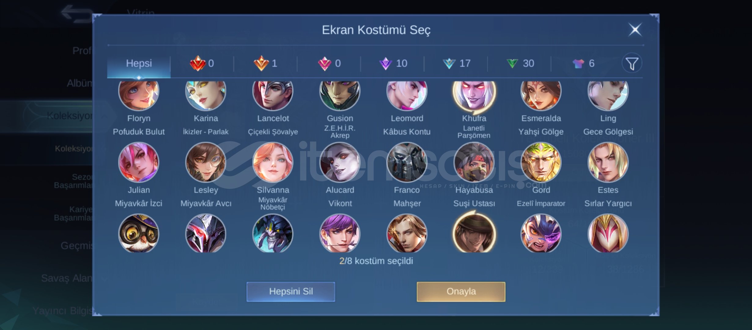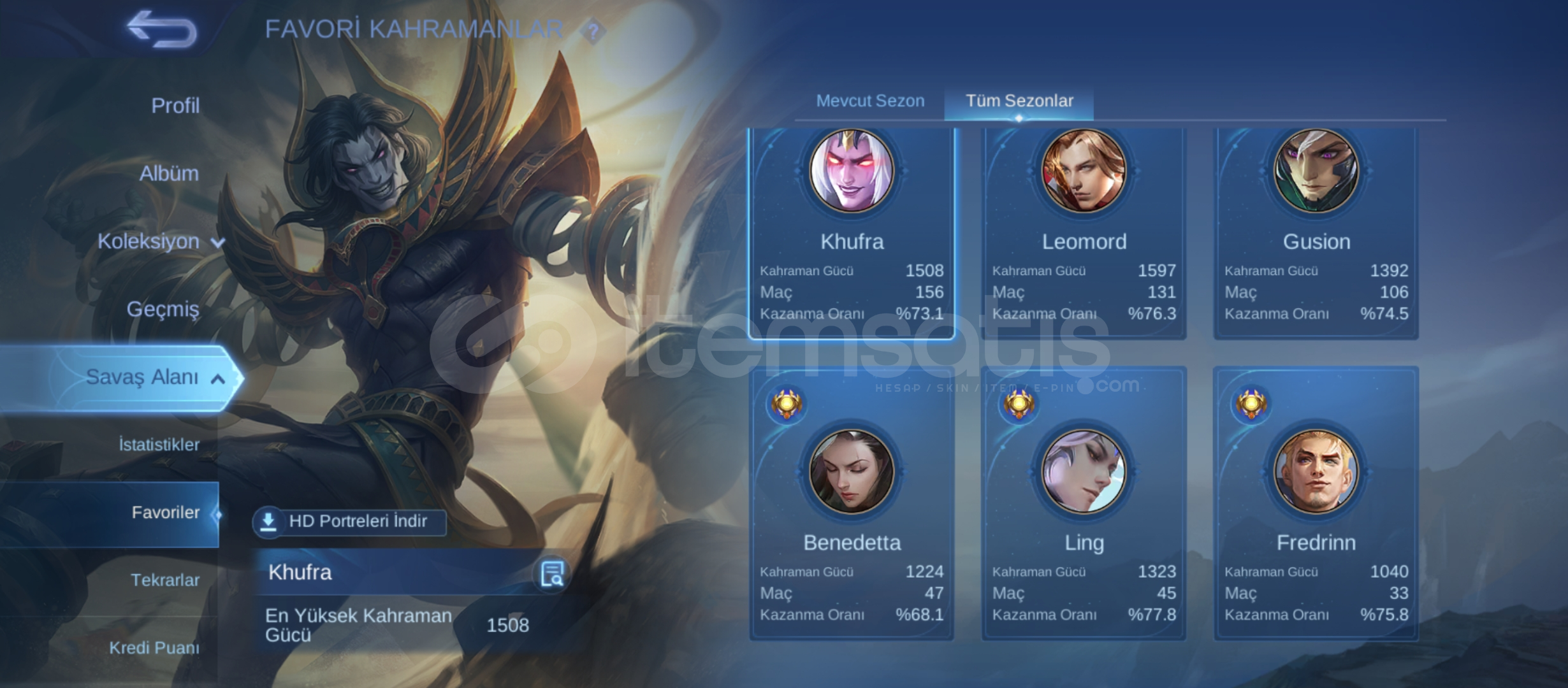 bu ayın yıldız üyeliği alındı 2.5k parçası var Max epige kasıldı khufra ve leomord main smurf hesap. Merak ettiğiniz sorular varsa özelden yazabilirsiniz, 450den aşağı düşemem teşekkürler.
