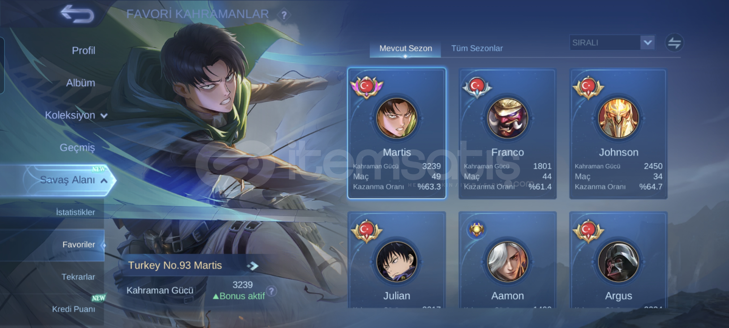 HESAP GÜNCEL OLARAK 75 YILDIZDIR VE TÜRKİYE SIRALAMADA MARTİS BULUNMAKTADIR YÜCE OLMAYA AZ KALMIŞ HESAP.