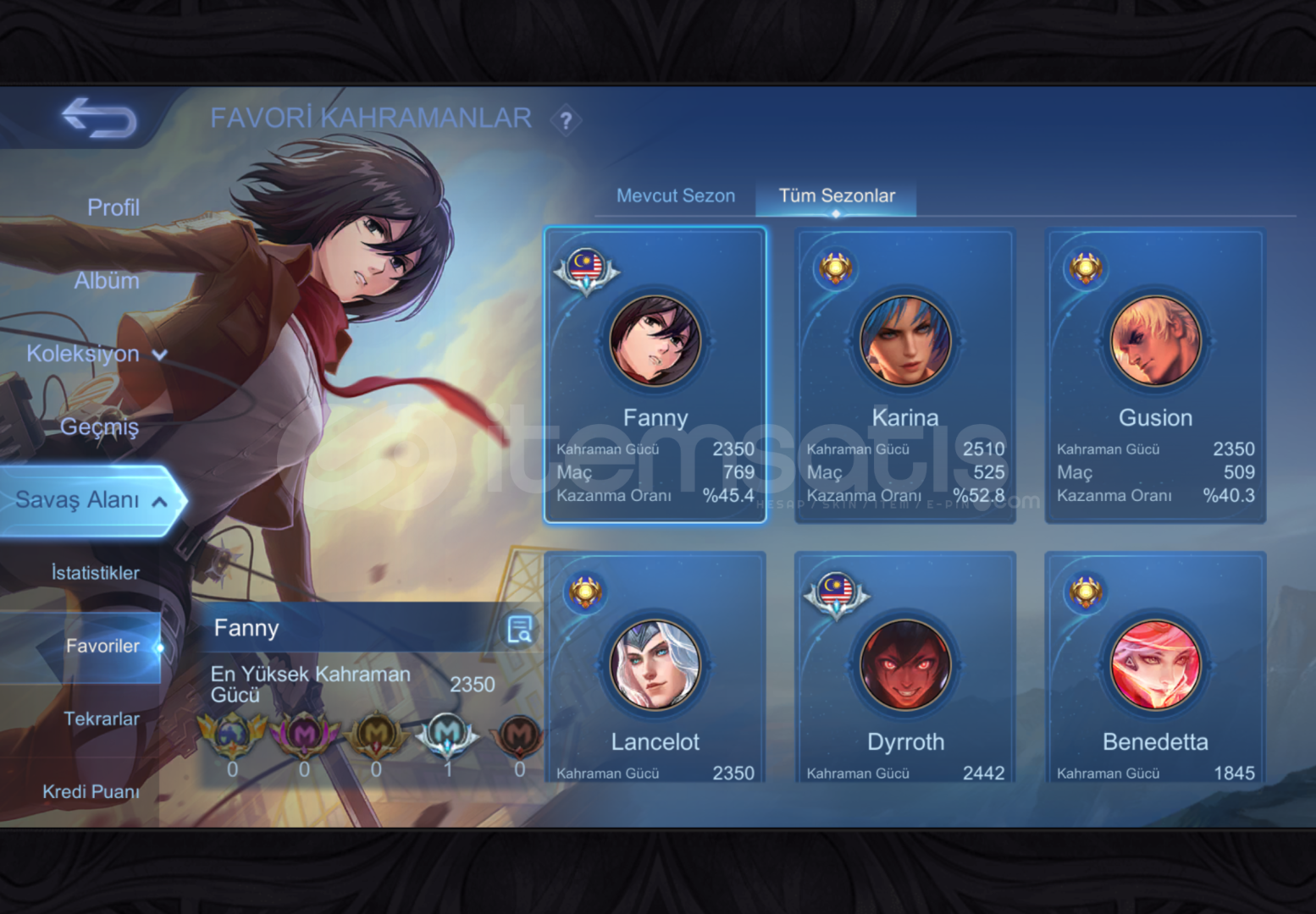 Fotoğraflarda göründüğü gibidir video isteyene özelden atarımhesabın bağları mail moonton değişim açık sizin mailinize bağlayıp vereceğimhesap mega 5 e göre özel kostümler içerir her animeden 1 kostüm vardır