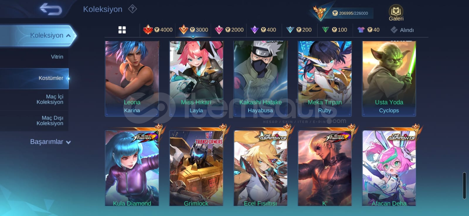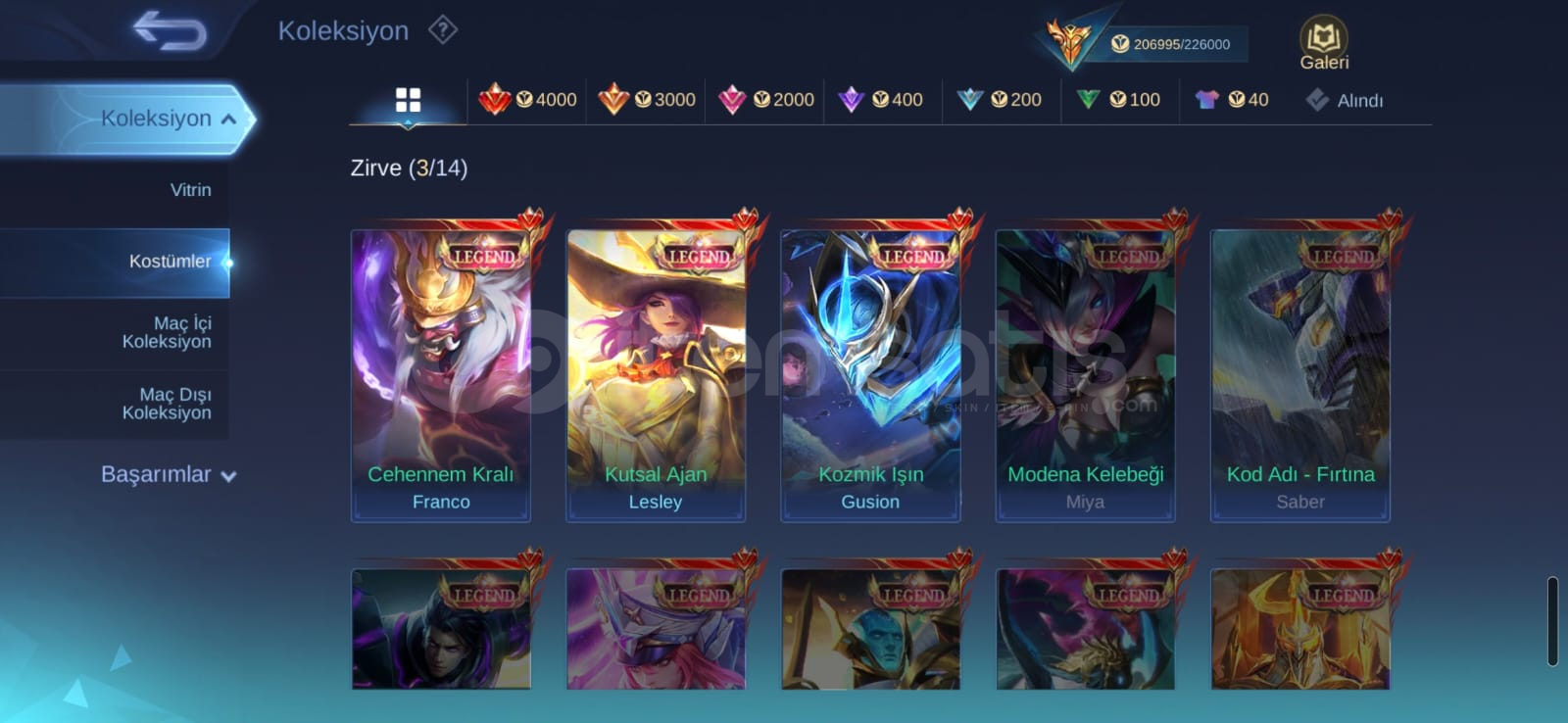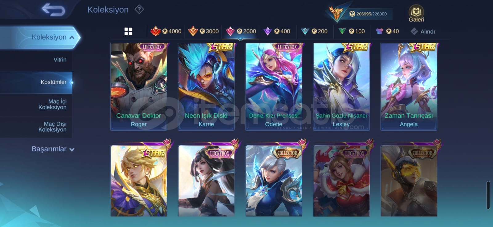 -Nadir skinler vardır-Az maçlı iyi oranlı-Oyunu bıraktığım için satıyorum-Bu fiyata böyle hesap bulunmaz ama yinede Ciddi alıcılara pazarlık olur ölücüler yazmasın-Hesapta ekstradan 300 elmas vardır