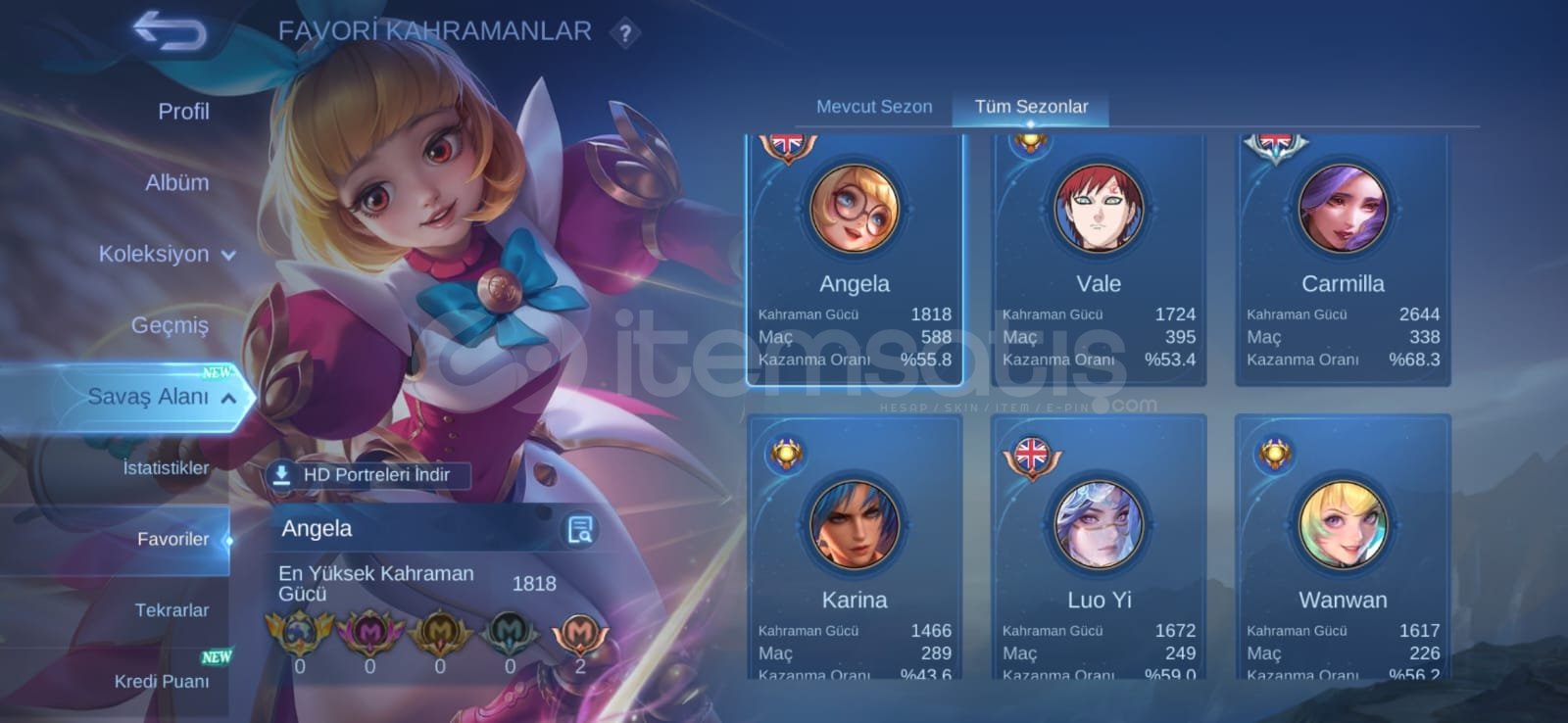 130 HERO 469 KOSTÜM MEGA IV. MAX AMBLEMLER. SİZE AİT OLAN MAİL ÜZERİNE TESLİM EDİLECEKTİR. SON FİYAT İNDİRİM YOKTUR. TR HESABIDIR. PİYASADAKİ GLOBAL ID HESAPLARLA KARIŞTIRMAYIN.JHONSON LEGENDLUNOX LEGEND CHOU KOFFAURORA KOFFKARİNA KOFFFANNY ASPİRANTSCHANGE ASPİRANTSLAYLA ASPİRANTSCLAUDESANRİOANGELA SANRİOFLORYN SANRİOGUSİON 11.11WAN WAN 11.11AAMON İHANET KONAKÇISIAN...