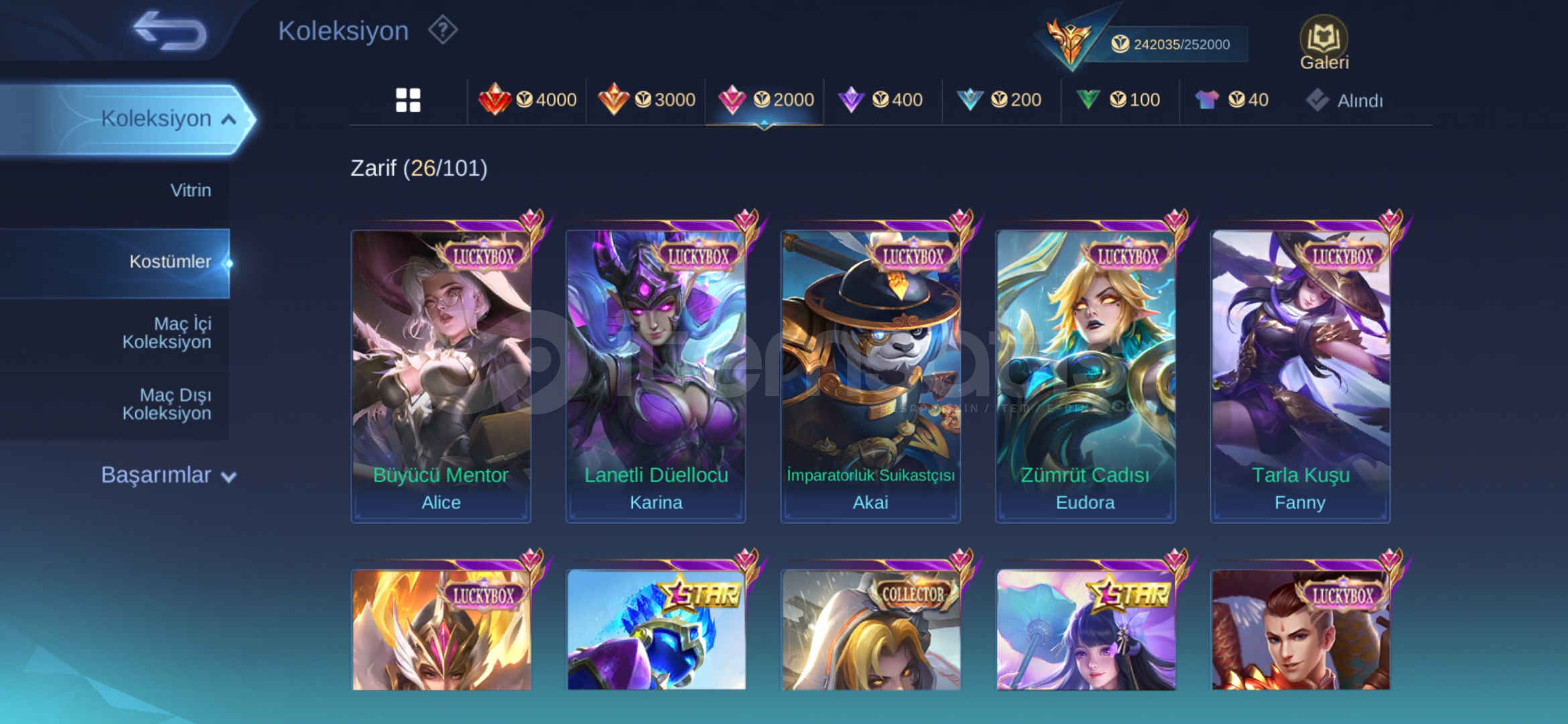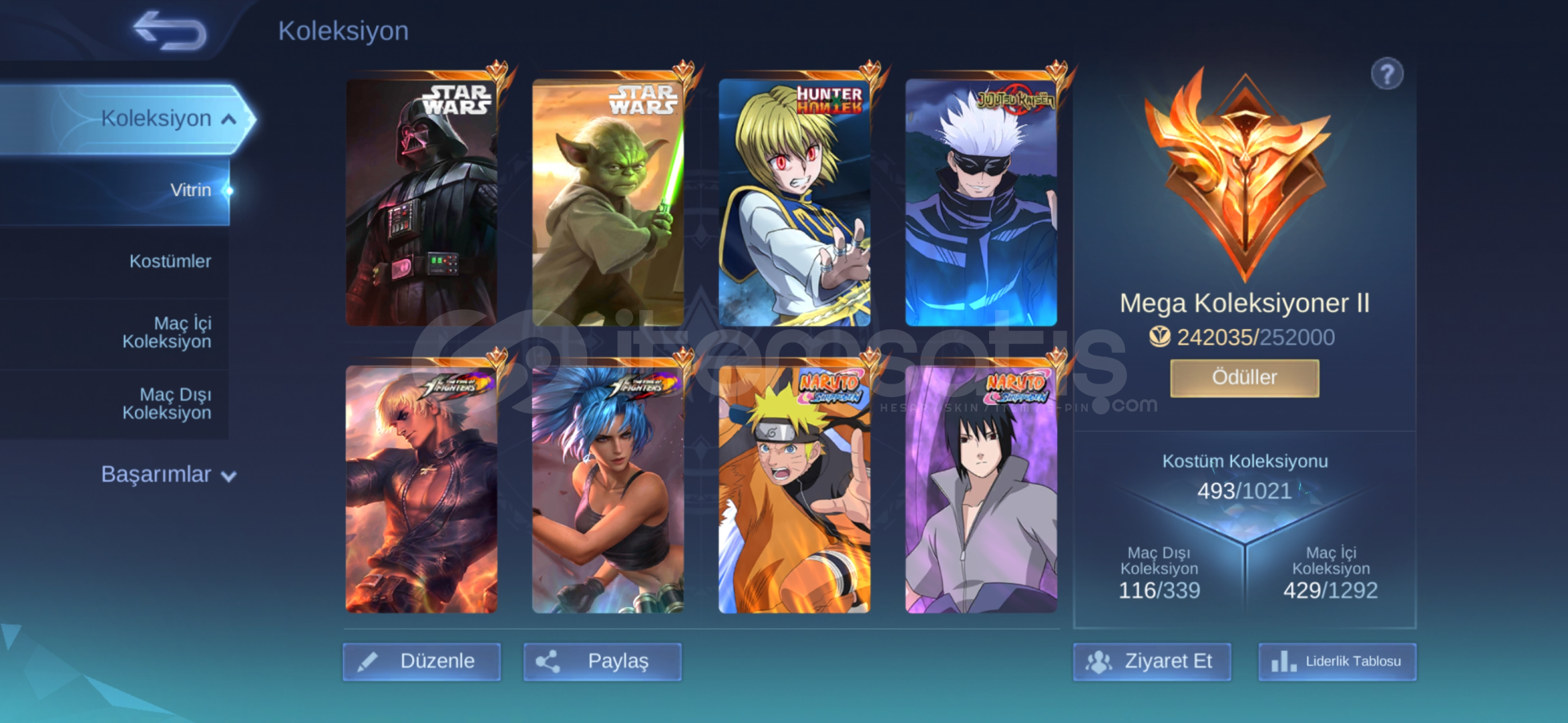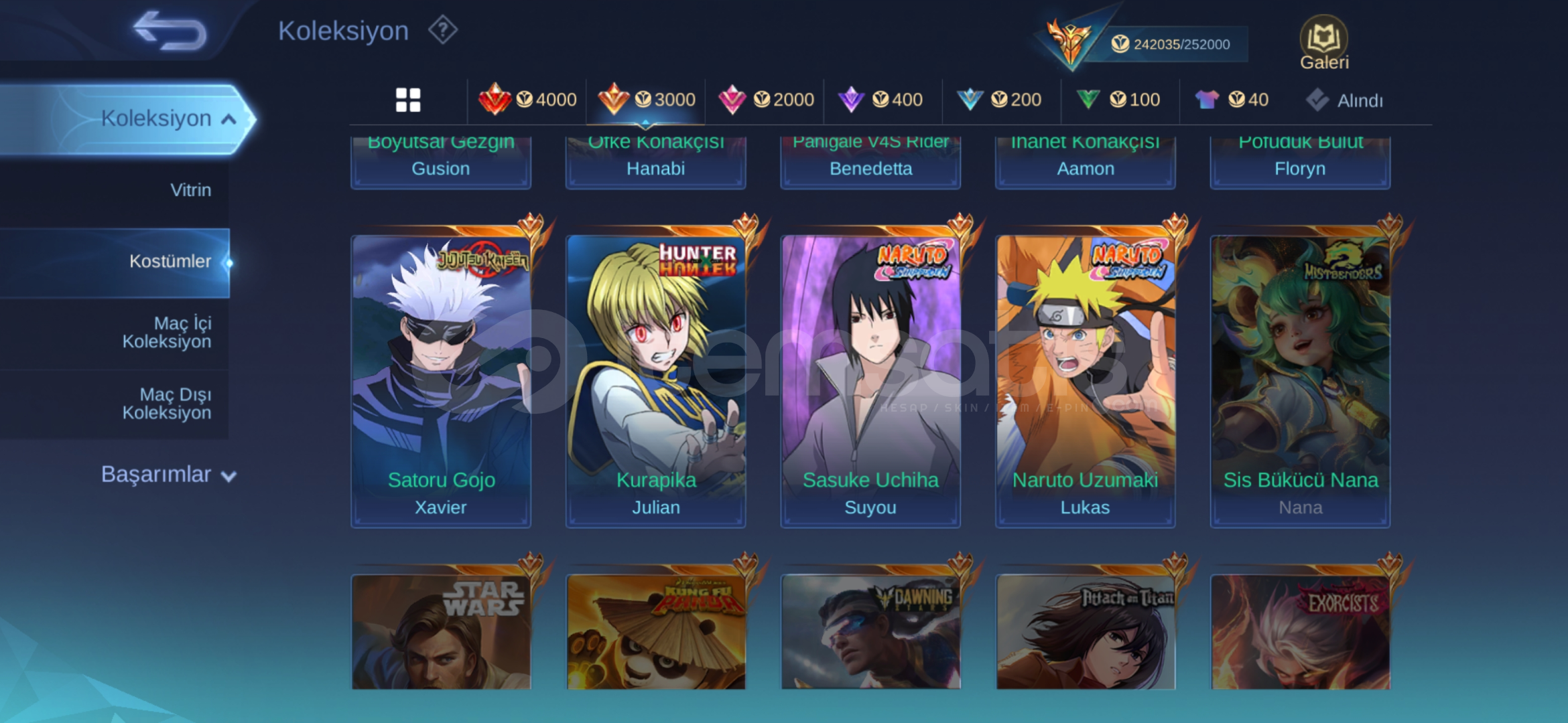 Artık oynamıyorum hedapta toplam 493 kostüm bulunuyor
