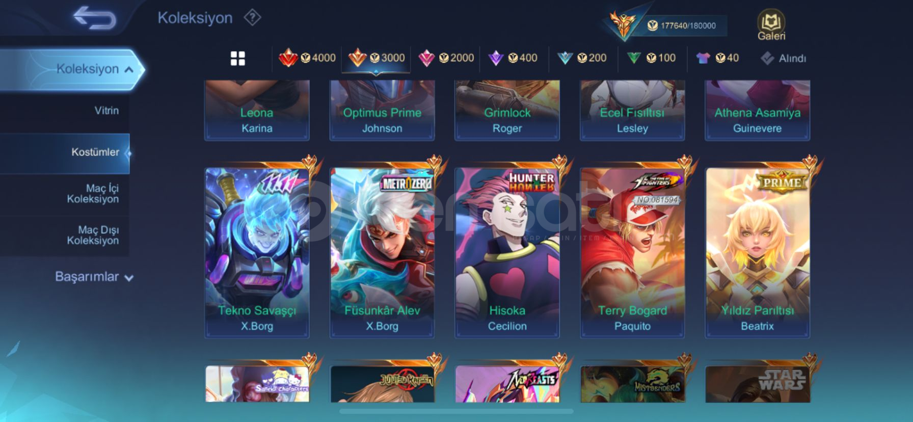 MEGA KOLEKSİYONER 5 SEVİYESİNDE FAKAT BÜYÜ ELMASI 200 ÜSTÜNDE MEGA 4 SATIN ALAN KİŞİ İSTEDİĞİ LEGEND KOSTÜMÜ ALARAK GEÇEBİLİR.