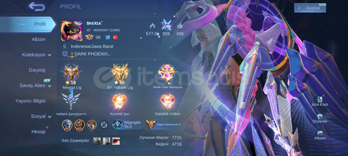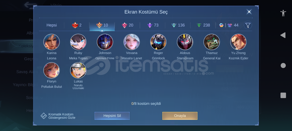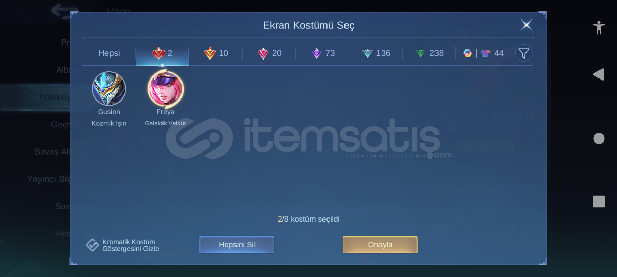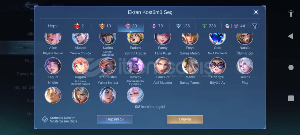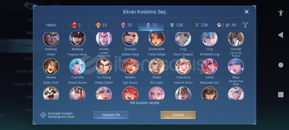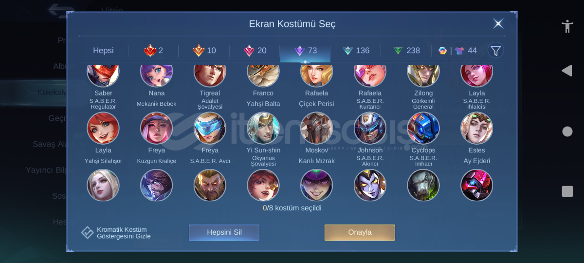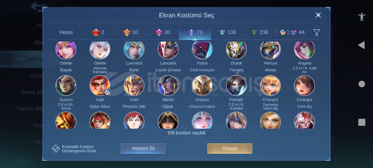 Hesap resimdeki gibidir. Kostümlere ek olarak bir de Alevli base efekti var epik oluyor galiba. Tek bağ moonton, Moonton'a bağlı gmail devriyle teslim. Filipinler elması hesabıdır. Elmas yüklerken TR yerine Filipin seçmek harici bir farkı yoktur (Fiyatları TR ile aynı düzeyde.)