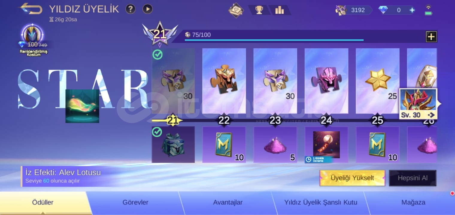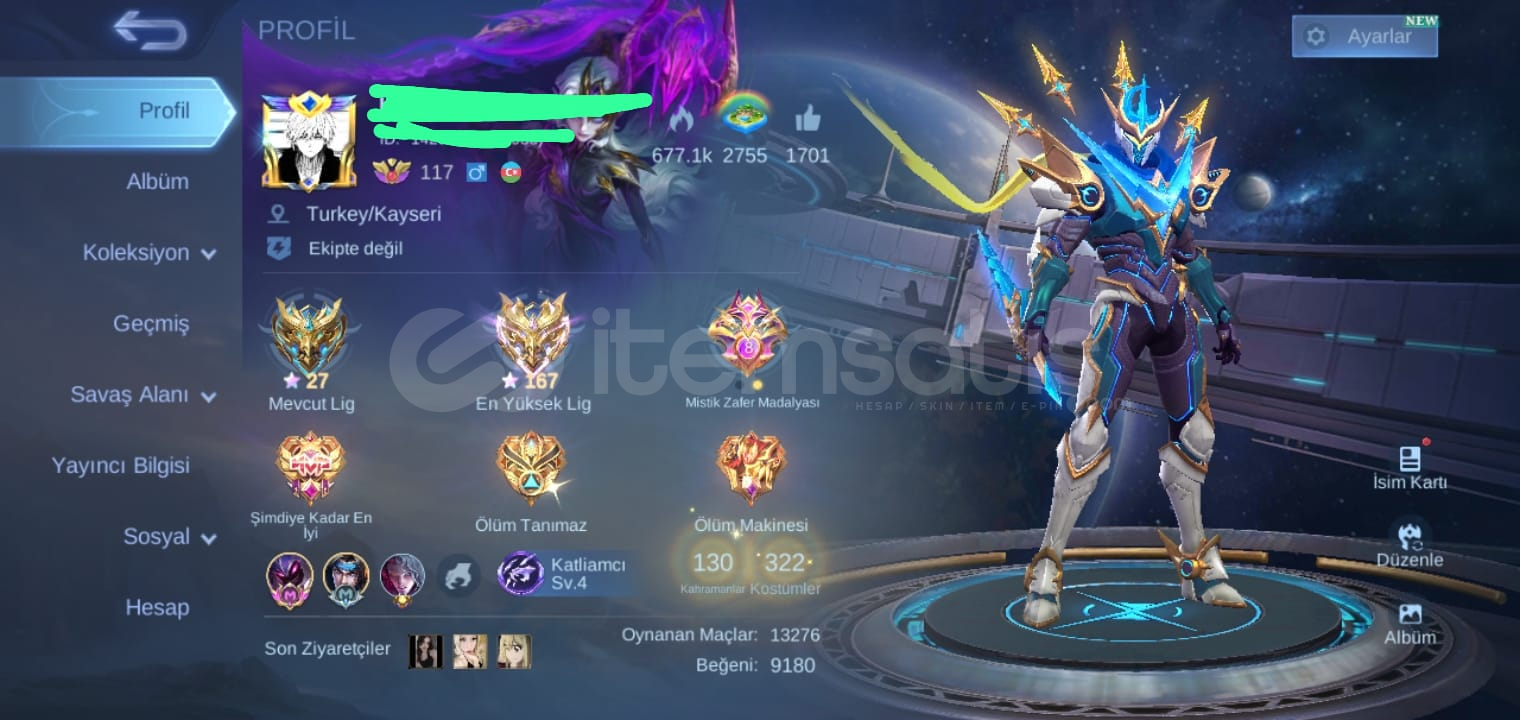 Uygun fiyata Güzel base efectleri var 3000 yıldız üyelik parçası mevcut şuan Yıldız üyelik aktif durumda güzel bol kostümlü 320 kostümlü meşhur hesaptır çift global taglı helcurt ve arlottta vardır.
