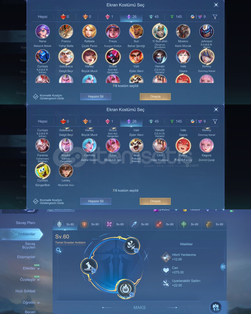 Sitenin En Büyük ve En Güvenilir Mobile Legends SatıcısındanEn Uygun Fiyat Garantisiyle• Yüksek işlem hacmine sahip güvenilir satıcı• 400+ başarılı işlem• Moonton’a bağlı Gmail ile güvenli teslim• İşlem öncesi & sonrası destek• Asya elmasHesapta 3. taraf bağlantıları mevcuttur. Aktif güvenlik nedeniyle şu an değiştirilemem...