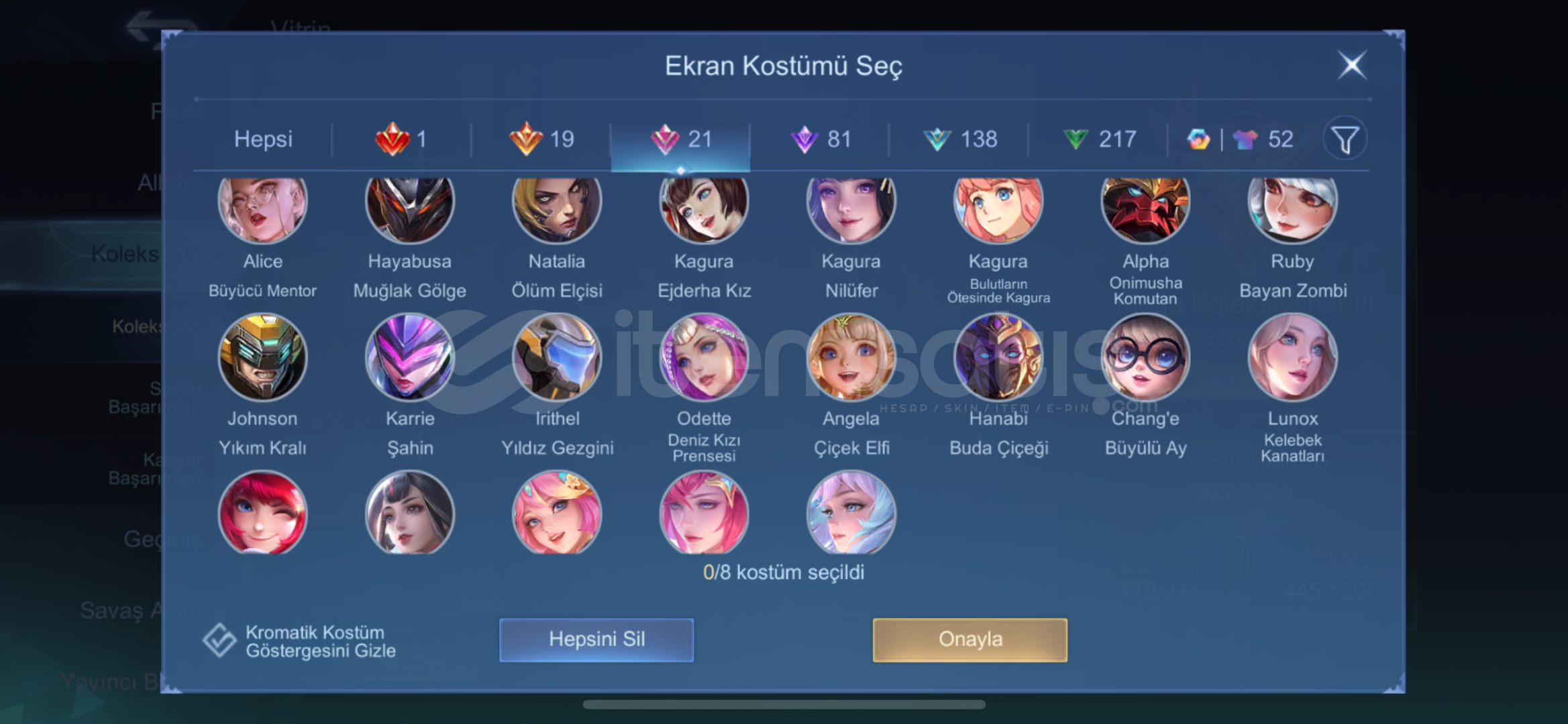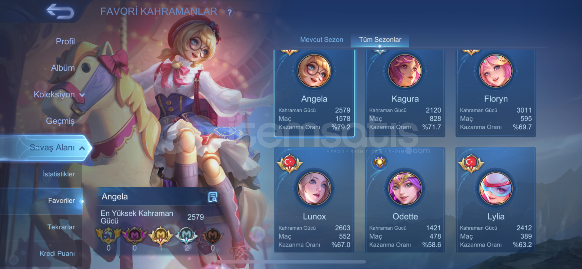angela aspirant harici fulllunox kagu odette floryn lylia kadita fullsanrio serisi fulllunox legend, zodiac cercevesi var 1m+ karizmahero ve amblemler fullmevcut lig efsane max mistik zafer 57152 buyulu cark tasi cantada 1 tane premium yildiz uyelik karti mevcut firtina, atilgan pisicik, kishin, sanrio ve daha fazla base efekti var bol bol emoji, dogus efekti ve oldurme bildirimleri mevcutkishin sohbet baloncugu varm6 iz efekti var