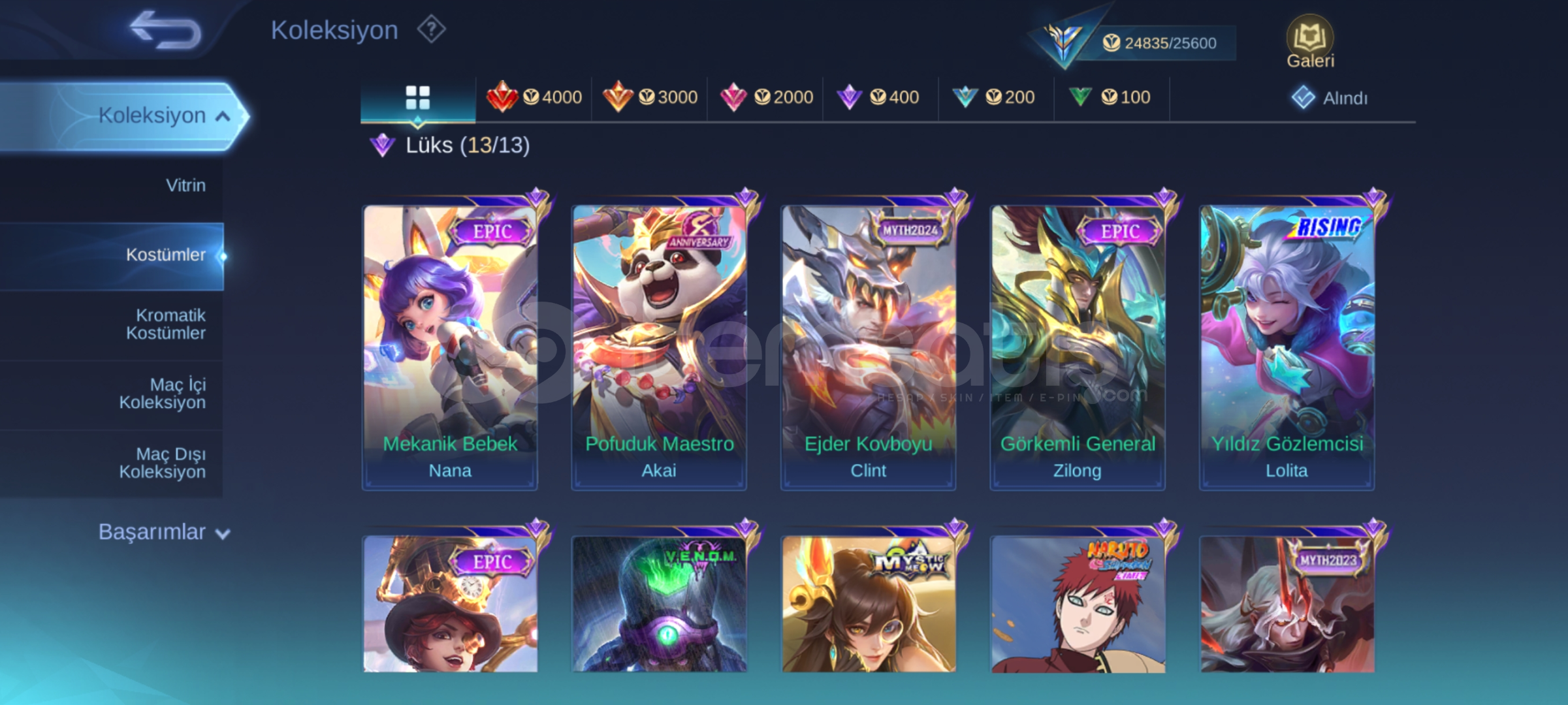 Not: 100 Hero ve 120 Skin üzeri çıkma İhtimali de vardır.