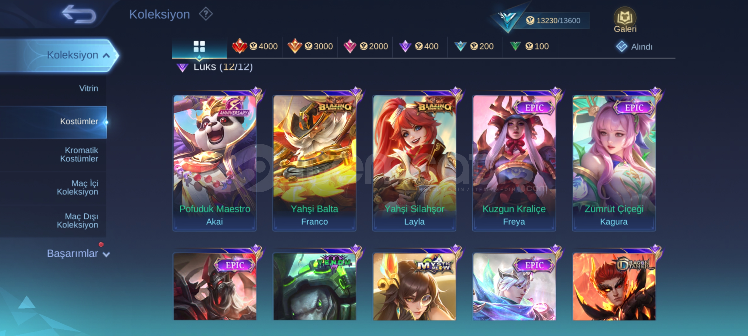 Toplam 40 Hero ve 55 Skin vardır.Size mail adresi ve şifre ile beraber devredilecek tamamen .