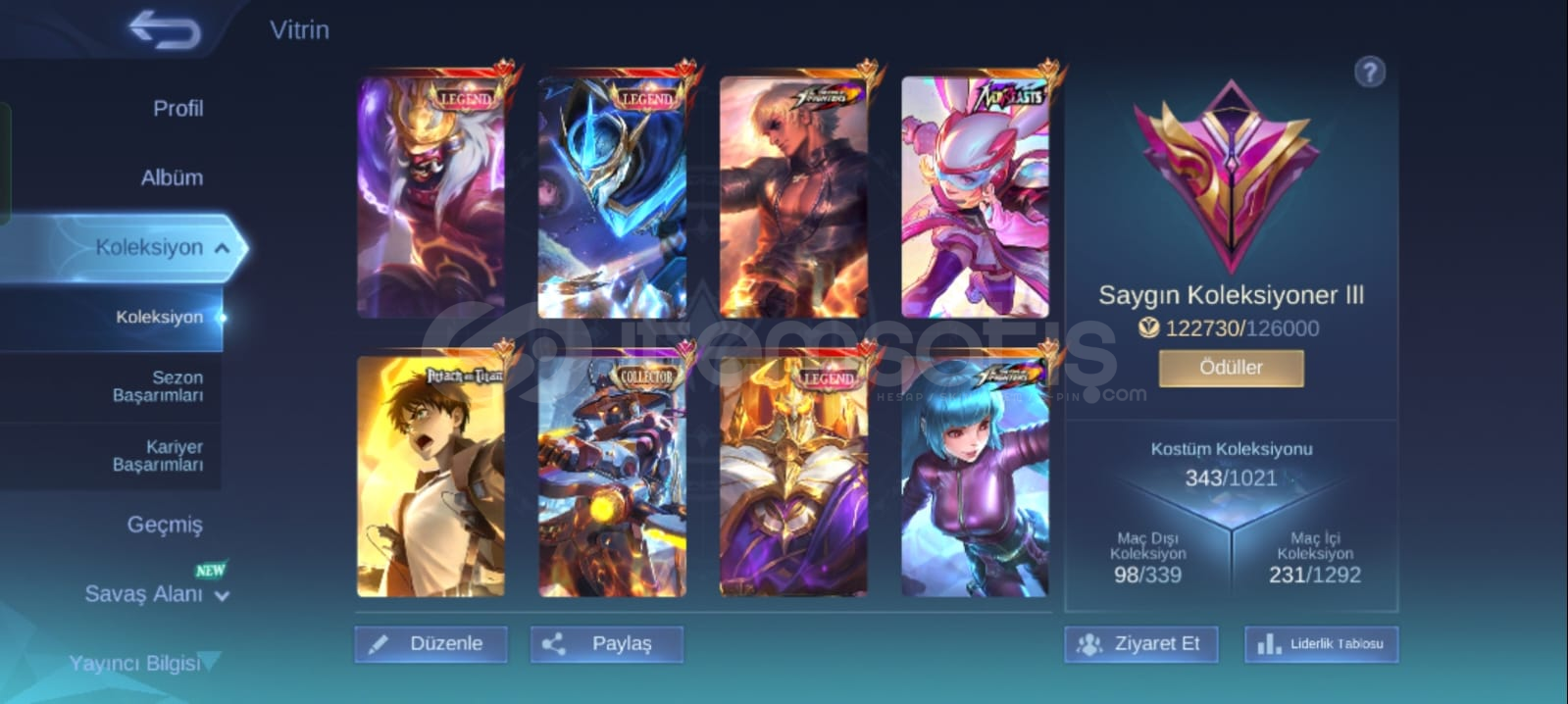 ✅ Birçok nadide ve özel kostüm mevcuttur — aralarında Legend, Epic, Collector kostümler bulunmaktadır.