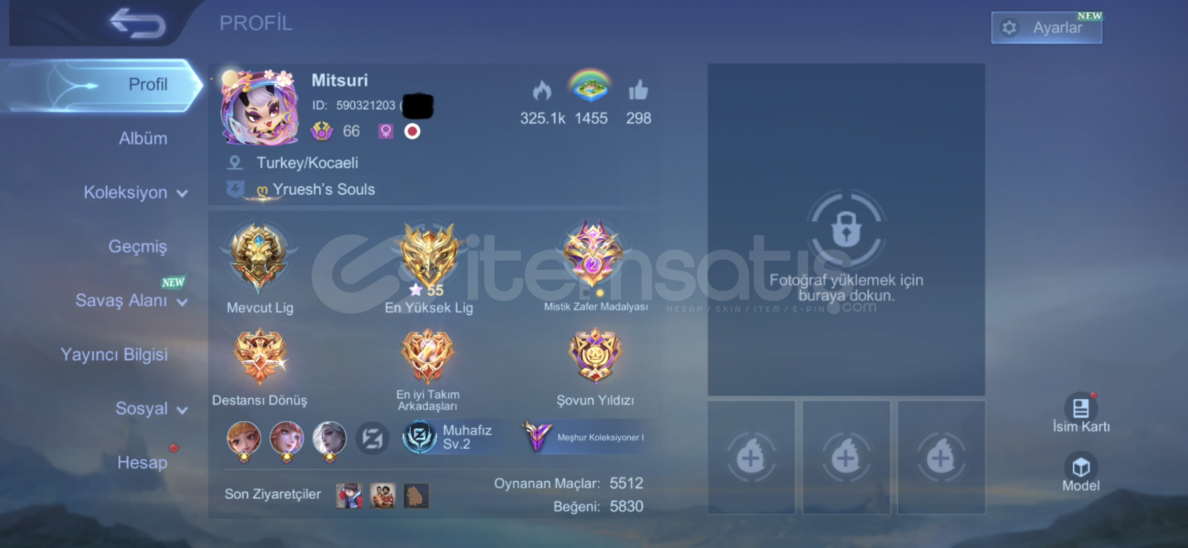Oran fazla yüksek değil hesapta daha çok belli kahramanlar oynanmıştır elimden çıkarmak istiyorum sadece kız oyuncular için ilgi çekici olabilir