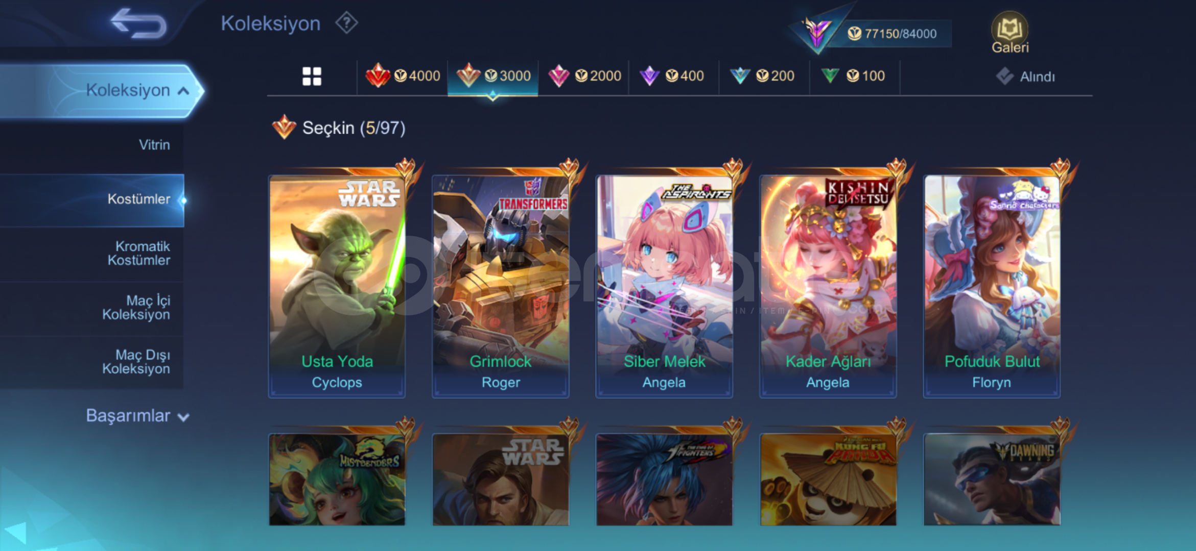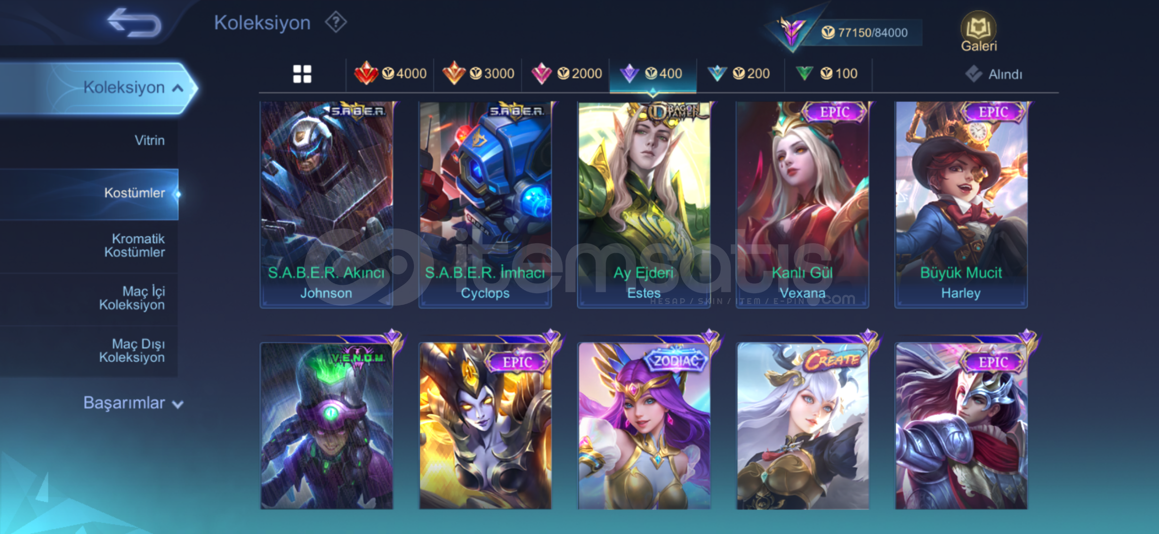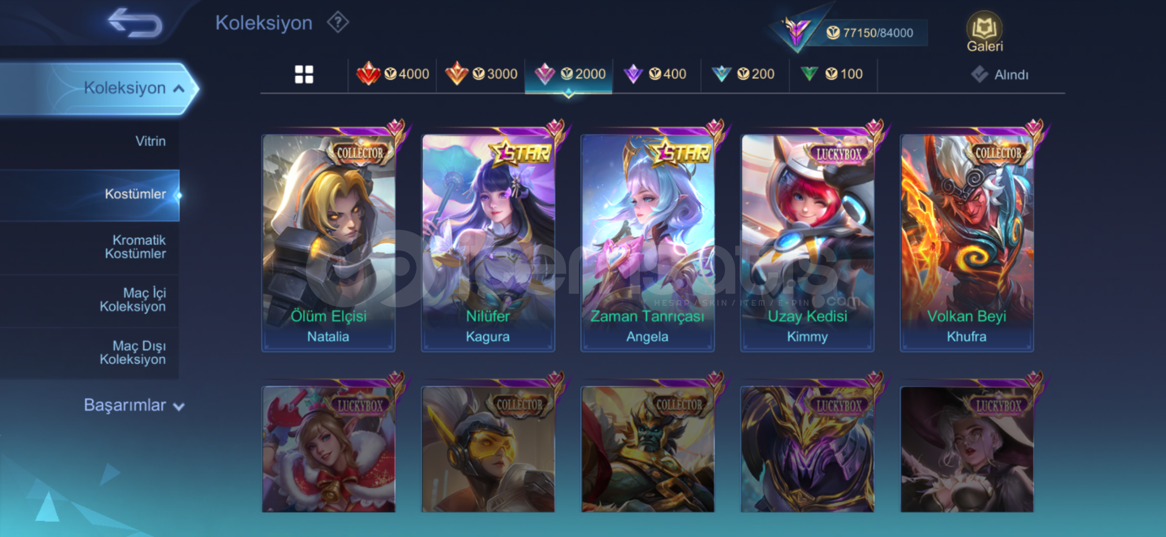 Oran fazla yüksek değil hesapta daha çok belli kahramanlar oynanmıştır elimden çıkarmak istiyorum sadece k...