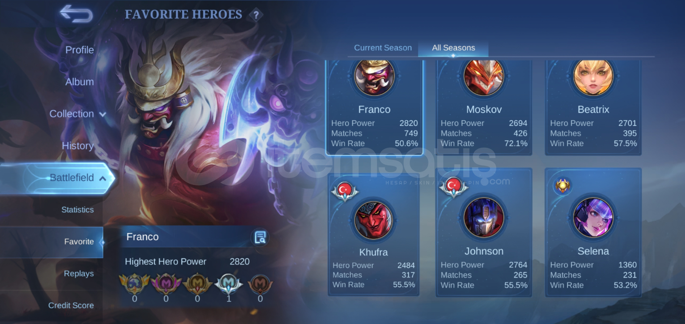 Siteye maksimum 10 resim yüklenebildiği için resim bu kadar ilana yüklenebildi. Hesapta 12.10.2025 tarihi itibariyle 69 günlük haftalık elmas geçişi vardır. Güncel ligi efsane, hero amblem full. Epik base şeylerinden de var detay isteyene hepsi atılır.