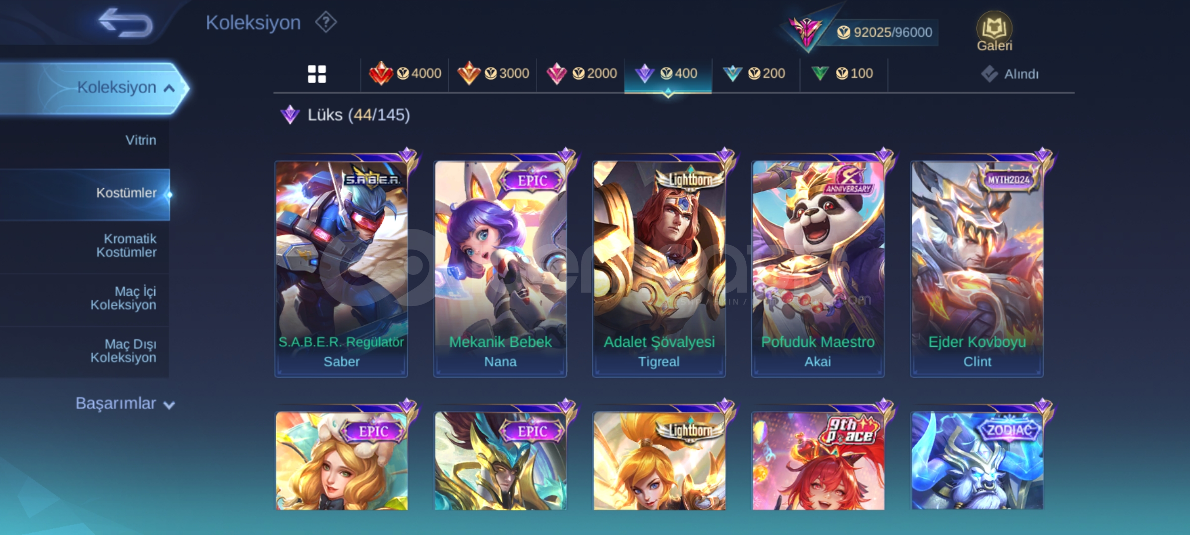 494K PopülerlikAz Maçlı176 Legend Kostüm İçin Büyü Çekirdeği4800 Yıldız Üyelik ParçasıSatın Alımda İstediğiniz Gmail Eklenerek Kod İle Gmailiniz Kaydedilecektir
